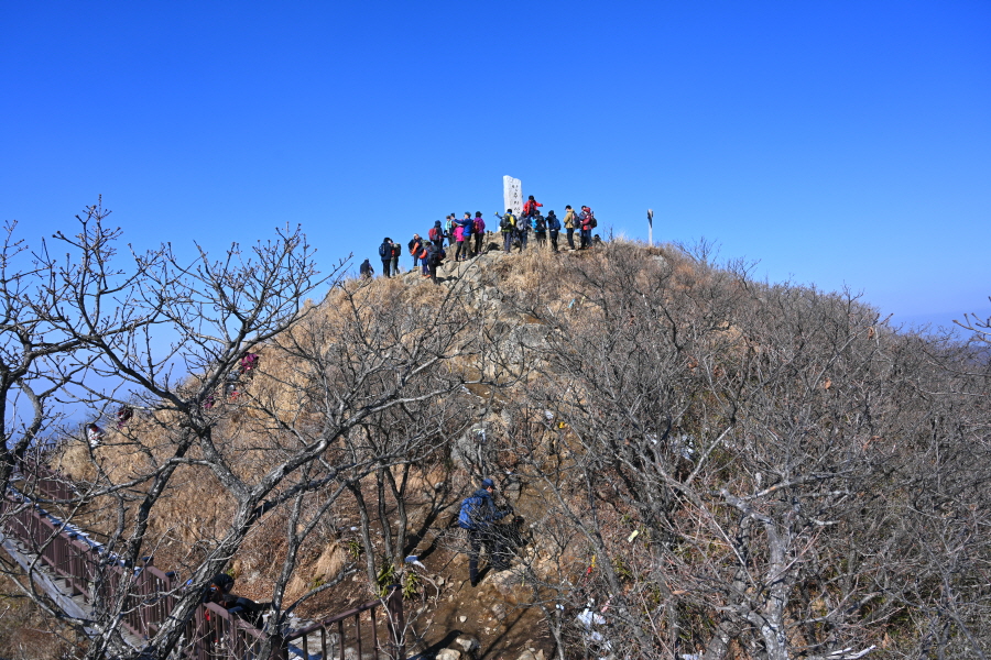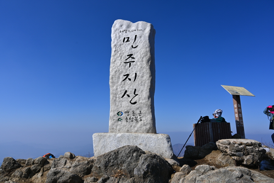 5분이면 대불마을 갈림길을 지나 민주지산 정상에 도착합니다. 따뜻한 날씨로 많은 등산 동호인이 몰려 정상에서 인증 사진을 찍는다고 난리입니다.