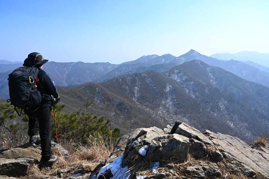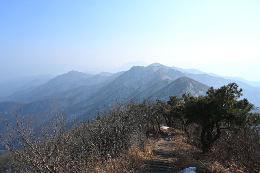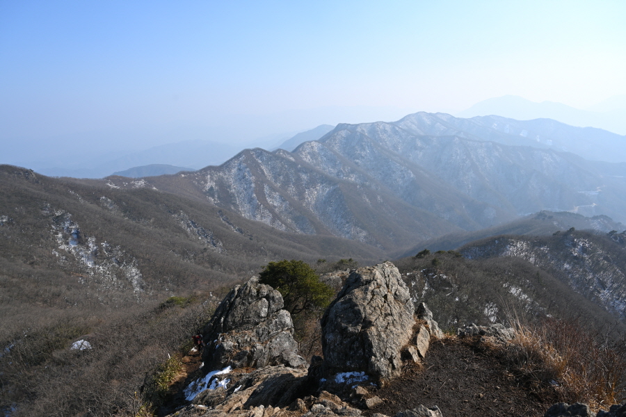 필자는 설산을 기대하며 물한계곡주차장에 도착했습니다. 그러나 언제 눈이 왔는지 알 수 없을 정도로 능선은 잔설만 언뜻언뜻 보였습니다. 필자는 심설 산행은 포기하는 대신 민주지산을 포함한 석기봉 삼도봉을 잇는 장쾌한 능선 종주 산행을 소개합니다.