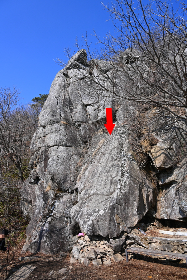곧 비스듬한 암반에 세긴 삼두마애불을 지나면 석기봉 정상입니다.