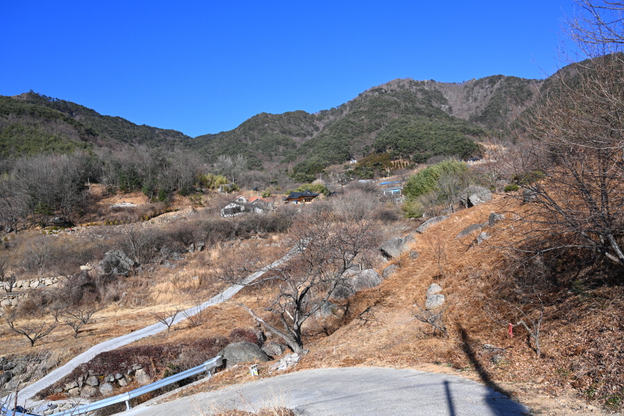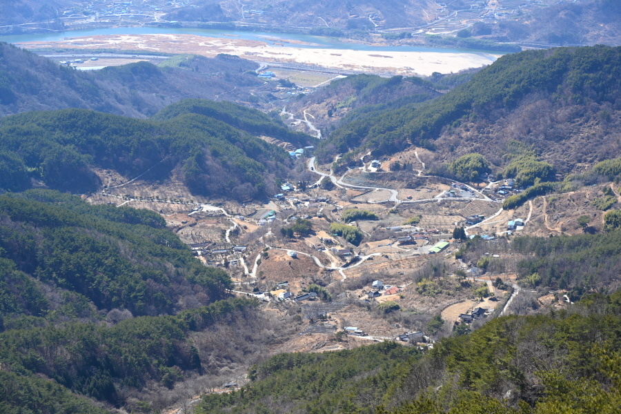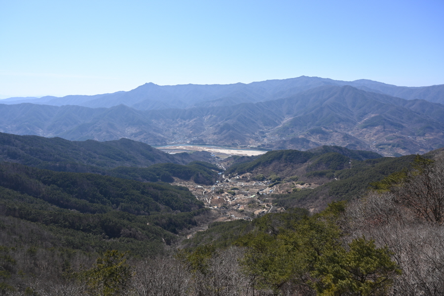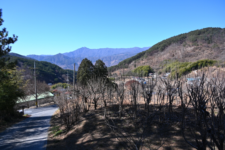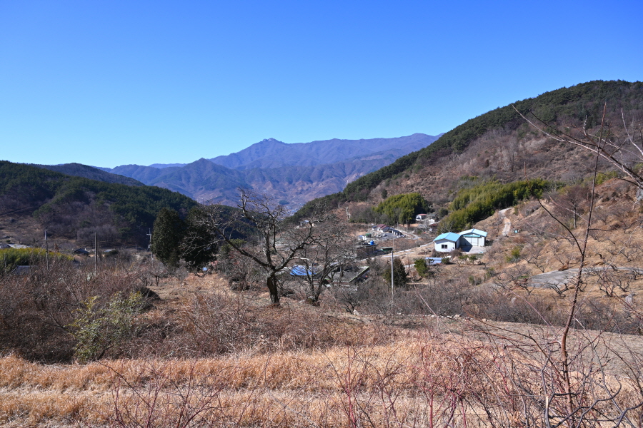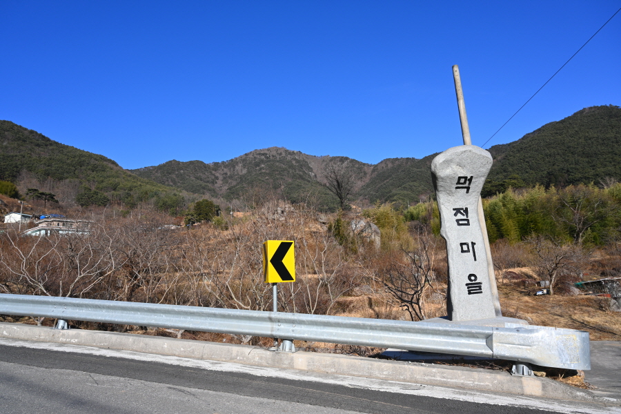 이번 산행은 먹점마을다목적회관에서 출발합니다. 정면에 구재봉에서 분지봉을 잇는 완만한 능선이 먹점마을을 포근히 감쌉니다.