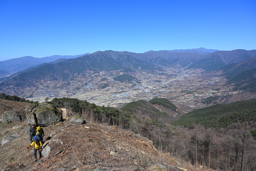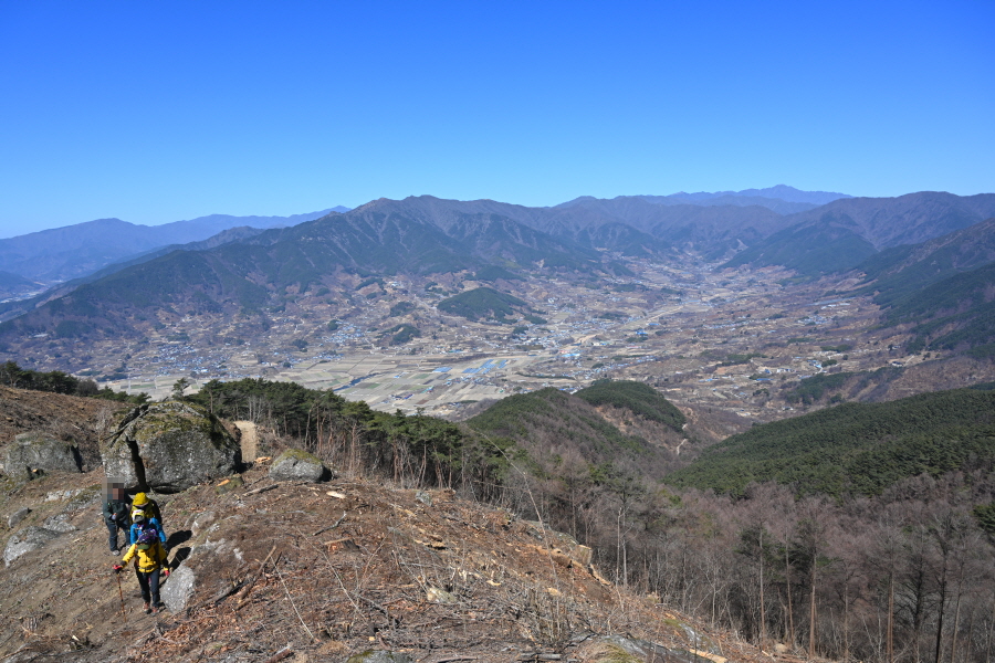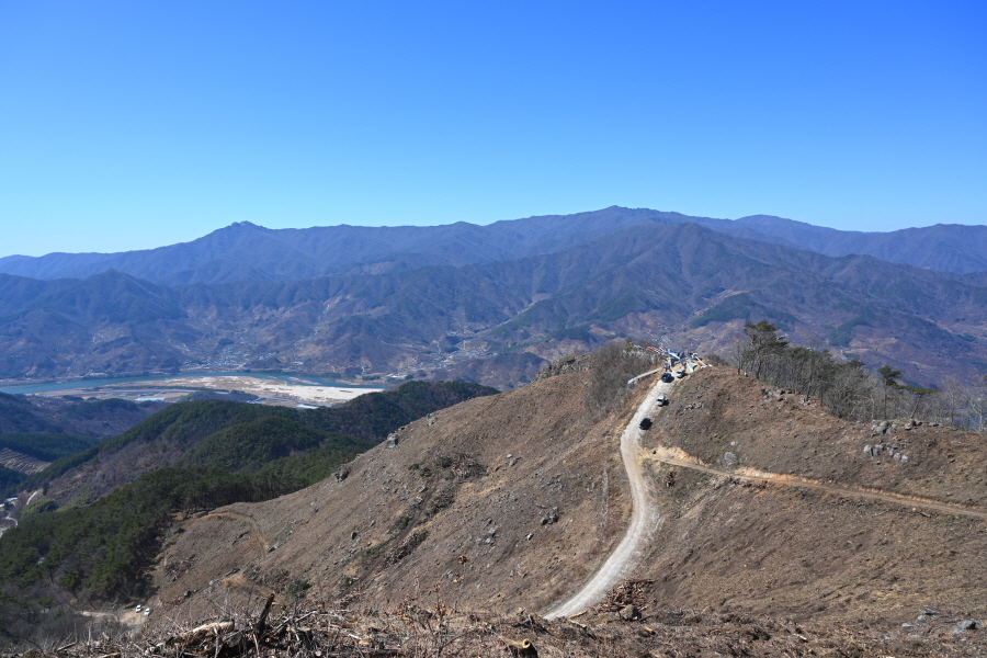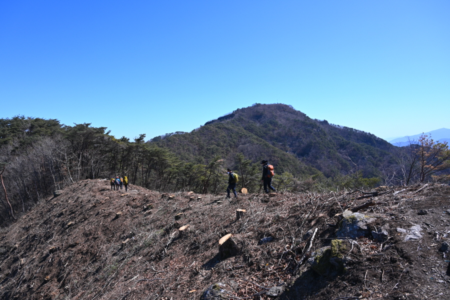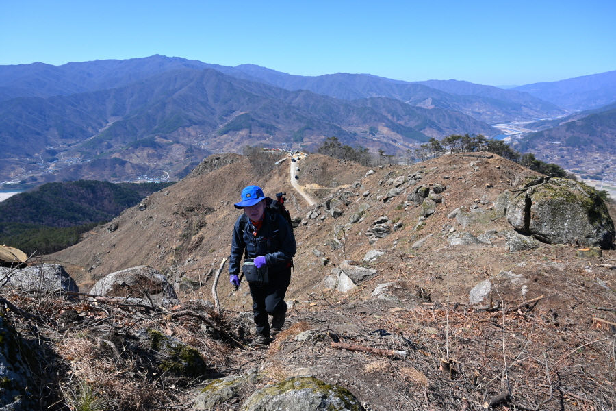 산불로 활공장만 전망대가 아니었습니다. 불에 타 잘려나간 아름드리 소나무를 보면 마음이 아프지만 활공장에서 675m봉까지 전망대 능선이 펼쳐집니다.