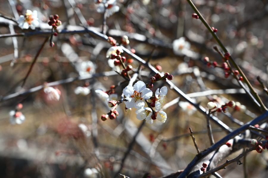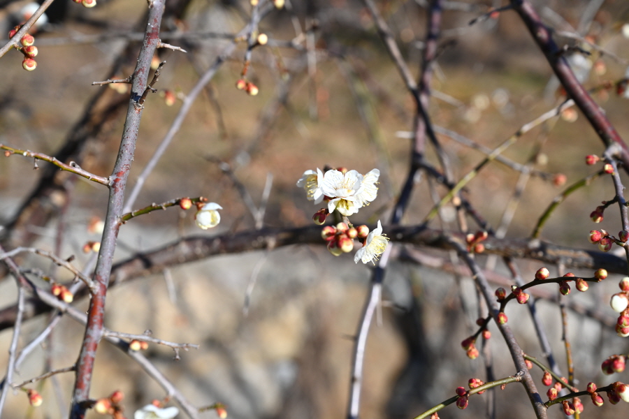 청매실농원보다 규모는 작지만, 먹점마을로 접어드는 도로 양쪽으로 가지를 쭉 늘어뜨린 수양매화를 시작으로 5ha 밭에 3만 여 그루의 만개한 홍매·청매가 3월 중순 부터 향기를 내뿜습니다. 먹점은 묵점(墨店)으로도 부릅니다. 이는 먹을 생산하던 곳에서 유래합니다.