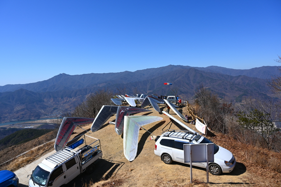 활공장까지 차로 이동할 수 있어 요즘 ‘최애’ 전망대로 떠오르는 장소입니다. 이날은 이륙을 기다리는 수십 기의 패러글라이더로 활공장은 빈틈이 없었습니다,