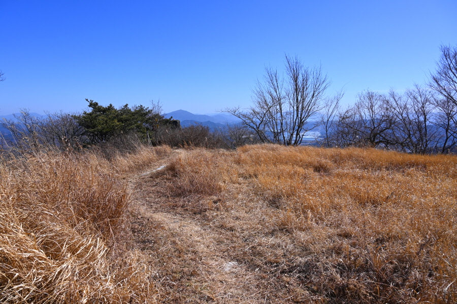 구재봉은 오른쪽 활공장으로 꺾습니다. 직진은 미점리 방향. 산모퉁이를 돌아가면 갑자기 민둥산이 나타납니다. 지난 해 2월 발생한 산불로 벌목된 산비탈을 돌아 활공장에 올라섭니다.