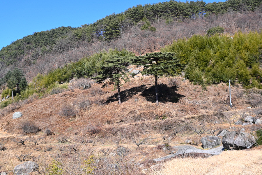 먹점마을을 품은 구재봉도 지난해 2월 산불이 나 1박 2일 동안 산림을 태웠다 합니다. 미점리 뒷산에서 처음 발생한 산불은 활공장을 넘어 구재봉 정상 직전까지 불길이 번졌습니다. 현재 불에 탄 나무를 모두 베어내 민둥산이 되었으며, 살아남은 소나무는 밑둥치에 불에 그슬린 흔적이 남아 있습니다.