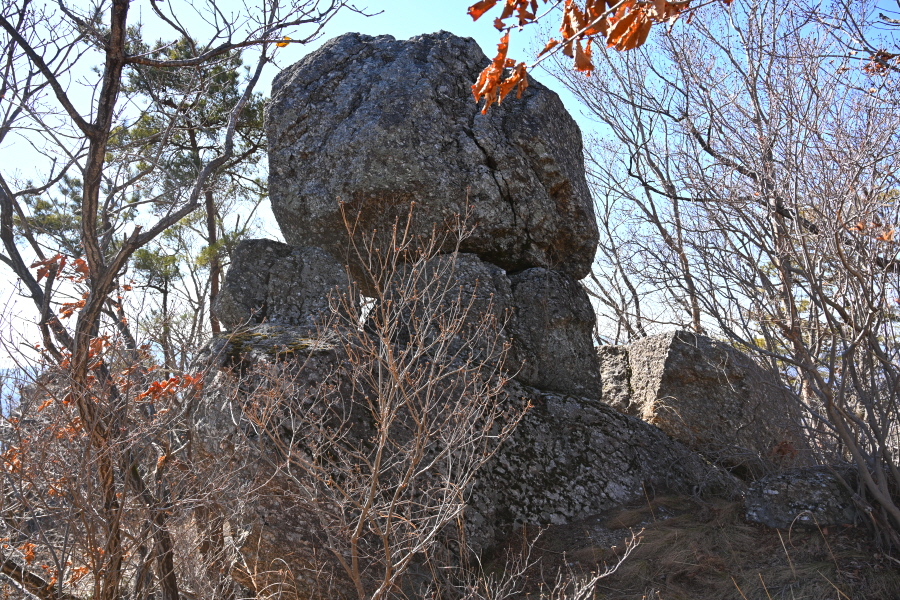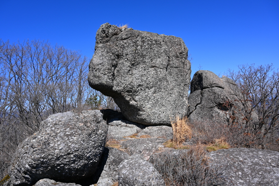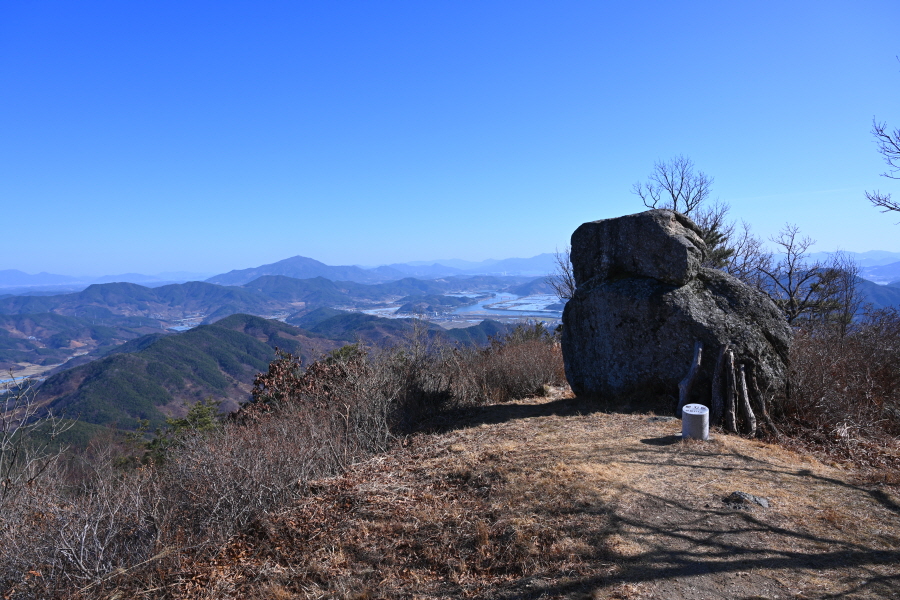 바위는 구석기시대 돌도끼를 닮았는데 앞은 너른 전망대입니다.