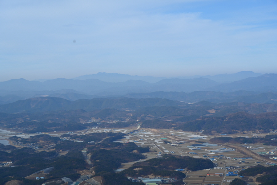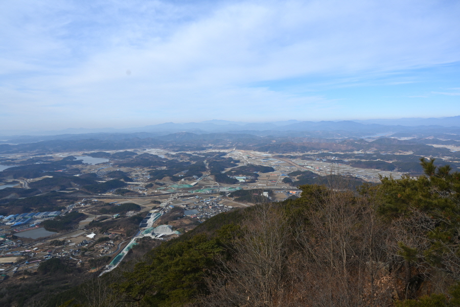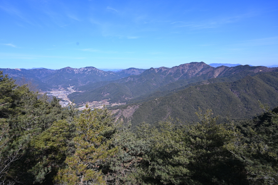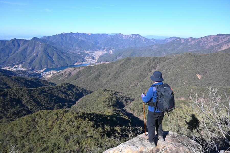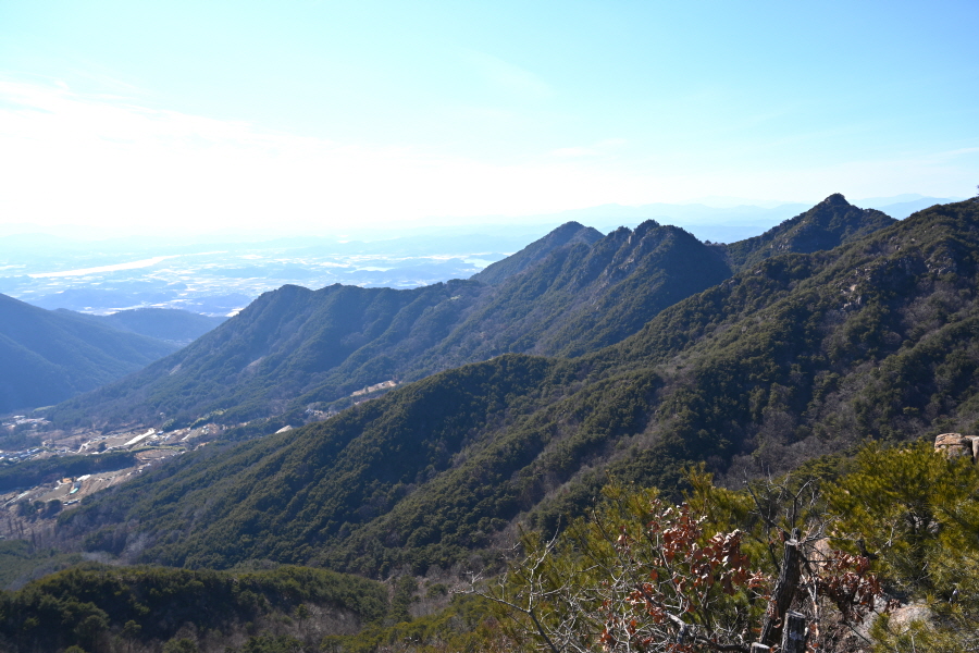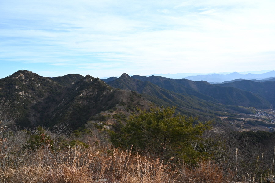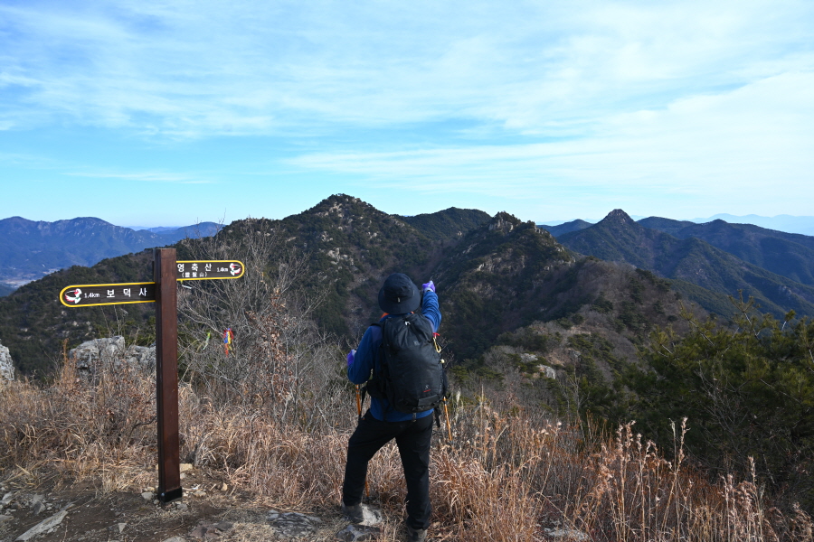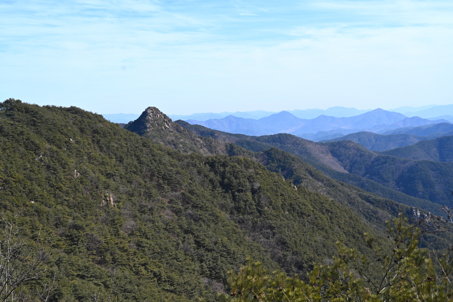 안전 시설물이 설치된 암릉을 넘어 변봉에 서면 조망이 열립니다.