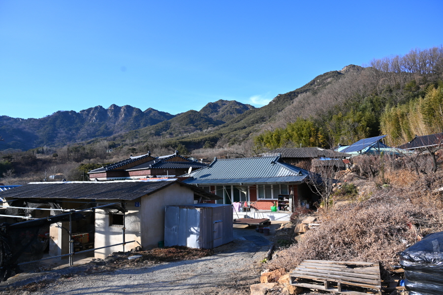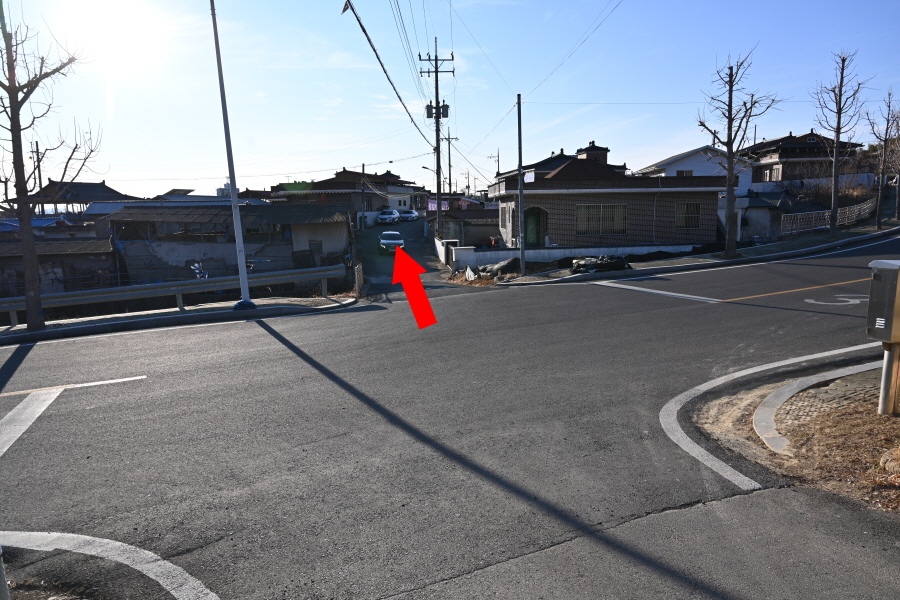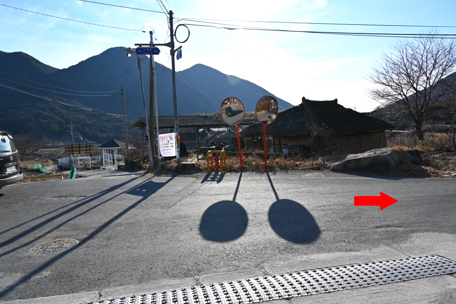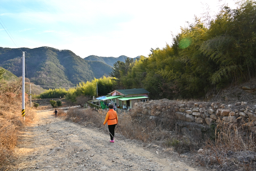 독립가옥을 지나 갈림길에서 직진합니다. 옛 보림사 터인 대숲을 지나 내촌마을에서 오른쪽 도로를 갑니다.