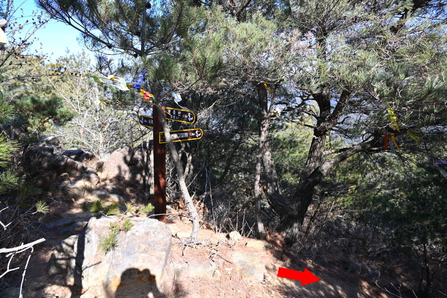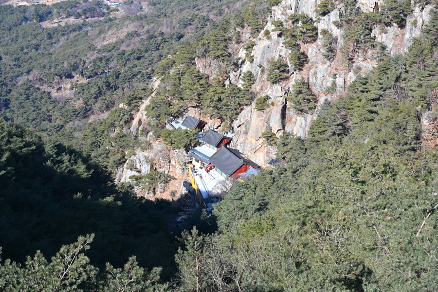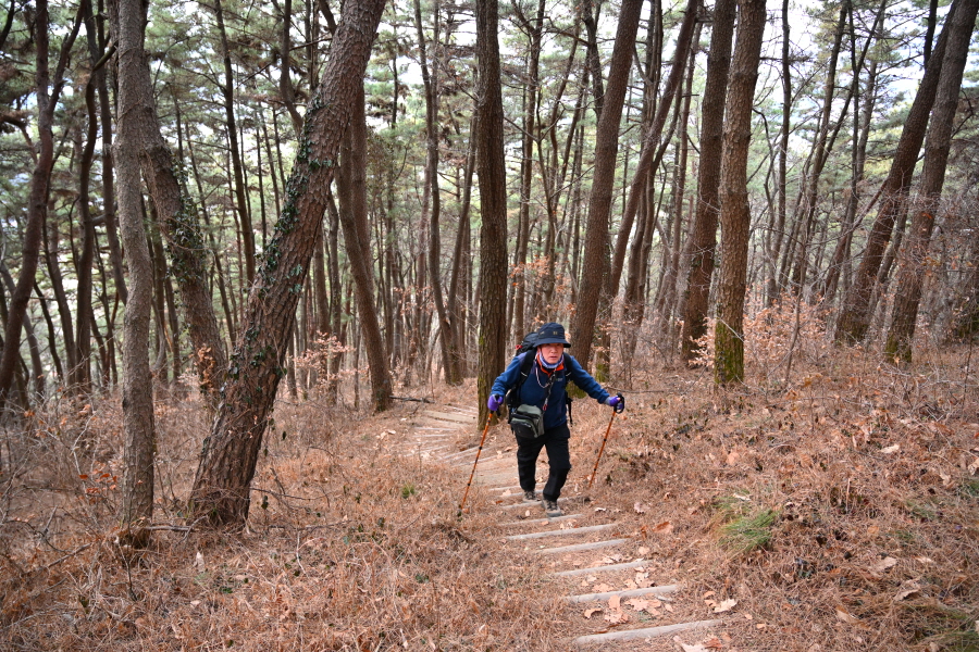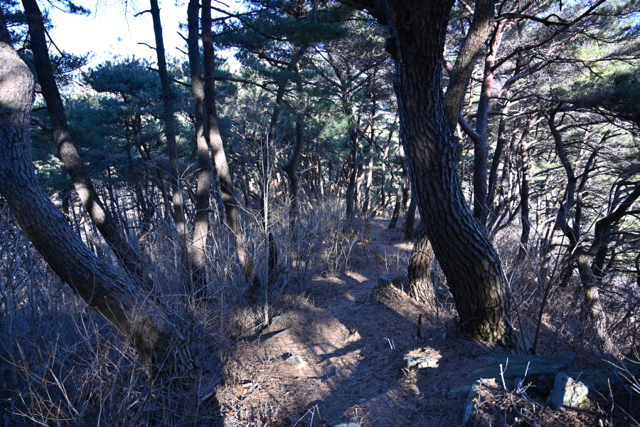 곧 보덕사 산신각에서 오는 길과 만나 5분 즈음 산비탈을 돌아 소나무가 하늘을 가리는 된비알 능선을 오릅니다. 약 30분 오르는데 한겨울에도 땀을 ‘속’ 뺄 만큼 가파릅니다.