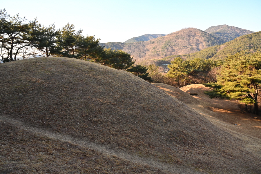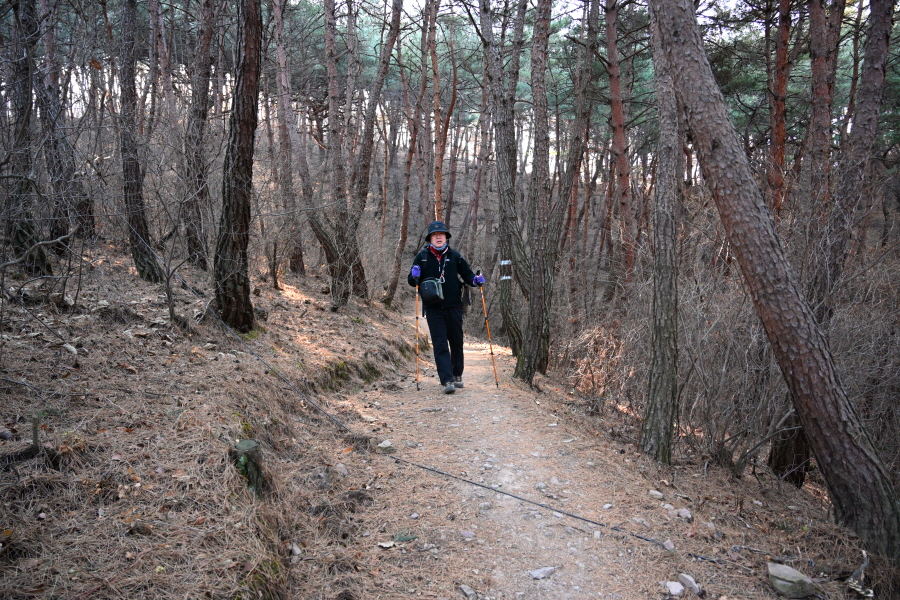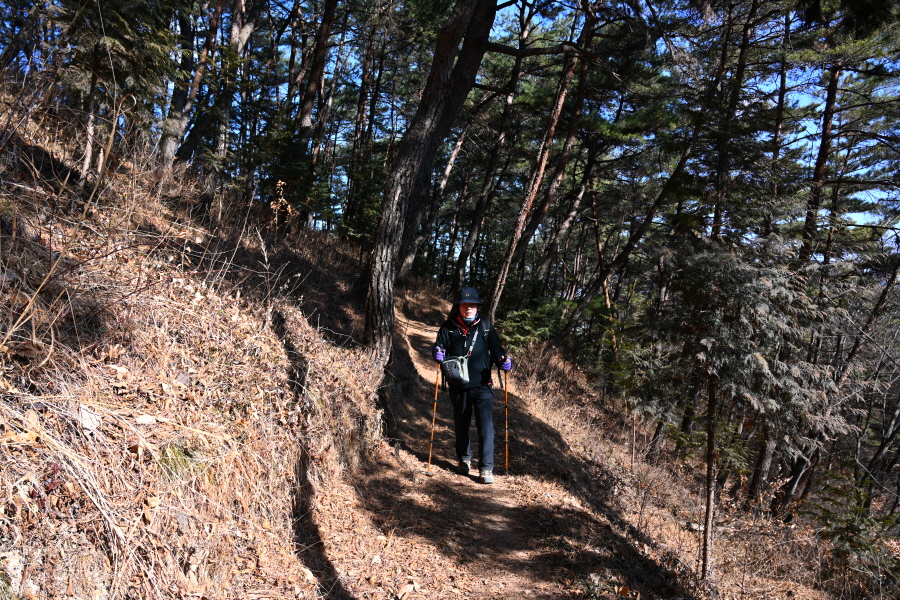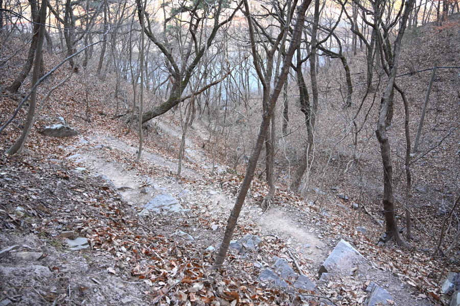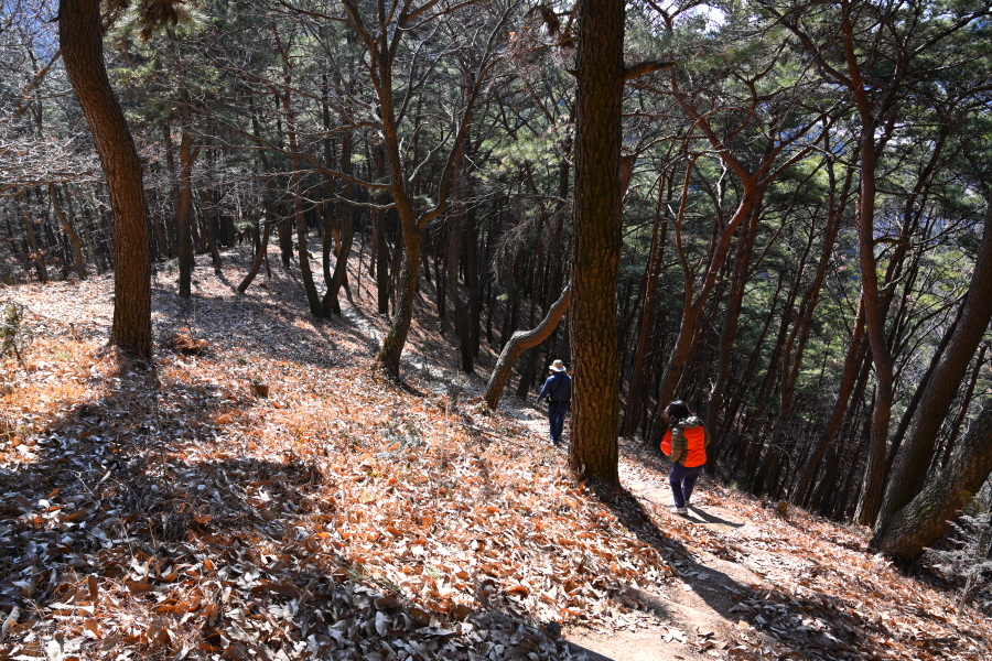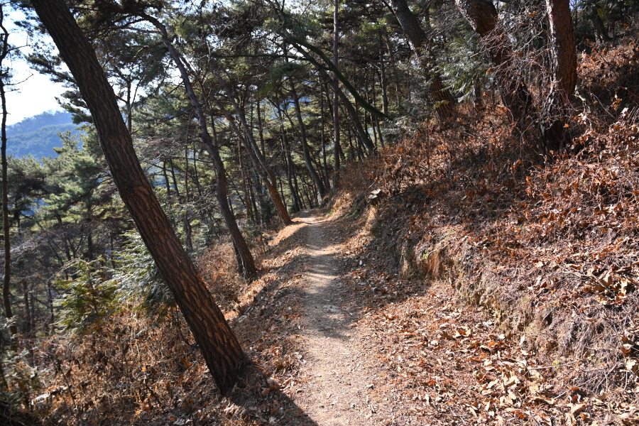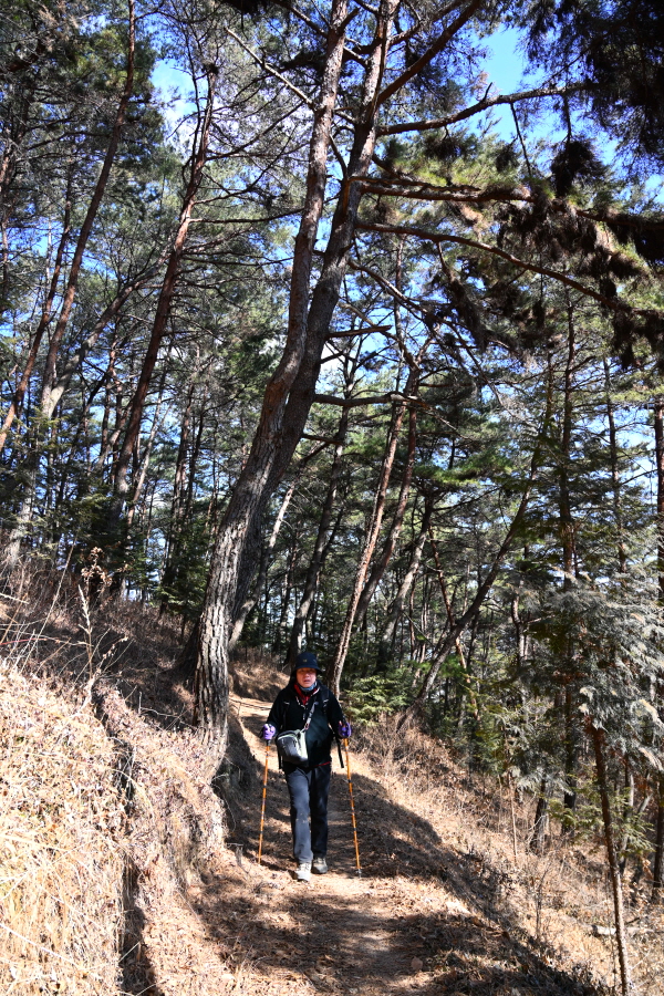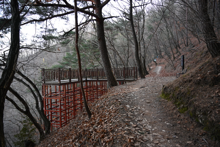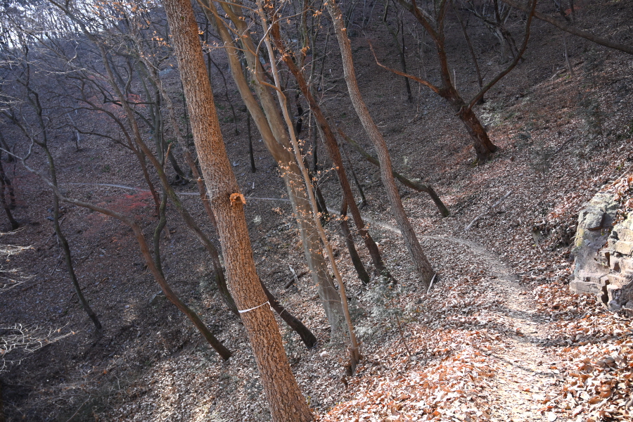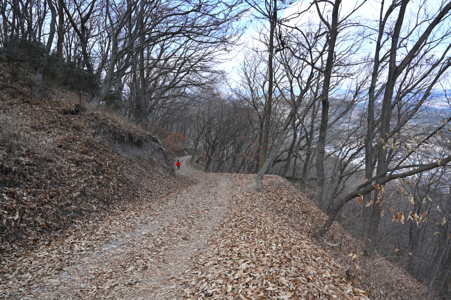 앙상한 가지만 남은 떡갈나무 사이로 구불구불 한 둘레길이 이어집니다.