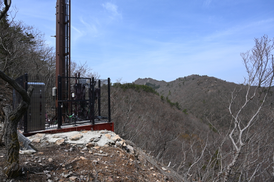 들머리에서 25분이면 집채만 한 바위를 돌아 전망대에 올라섭니다. 곧 우정봉 정상에 오른 뒤 이동통신 중계기를 지납니다.