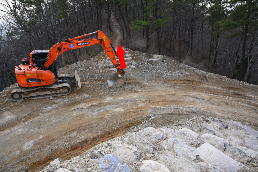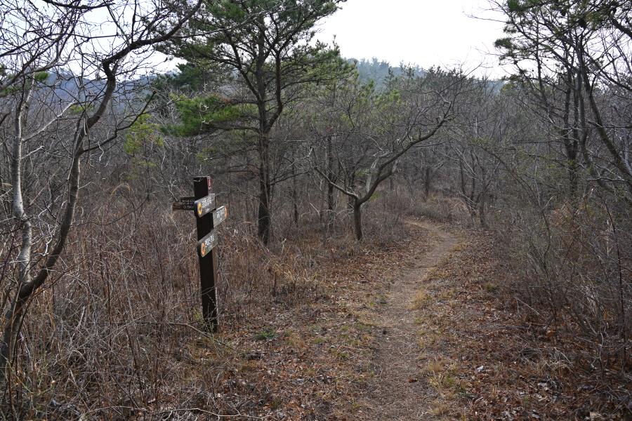 이번 산행은 공영주차장을 나와 오른쪽 금강저수지 방향 도로를 갑니다. 곧 제방 옆 축대를 올라가는 삼봉 방향 갈림길이 나오는데 필자의 하산길입니다.