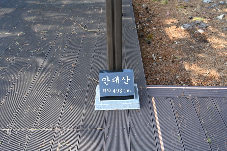완만한 능선은 산죽밭을 지나 25분이면 너른 덱이 깔린 만대산 정상에 올라섭니다.