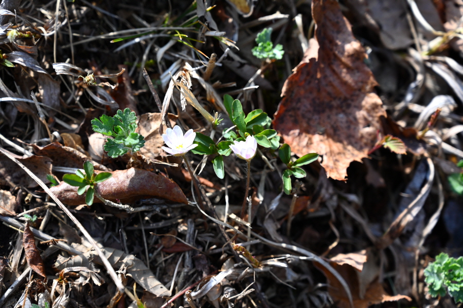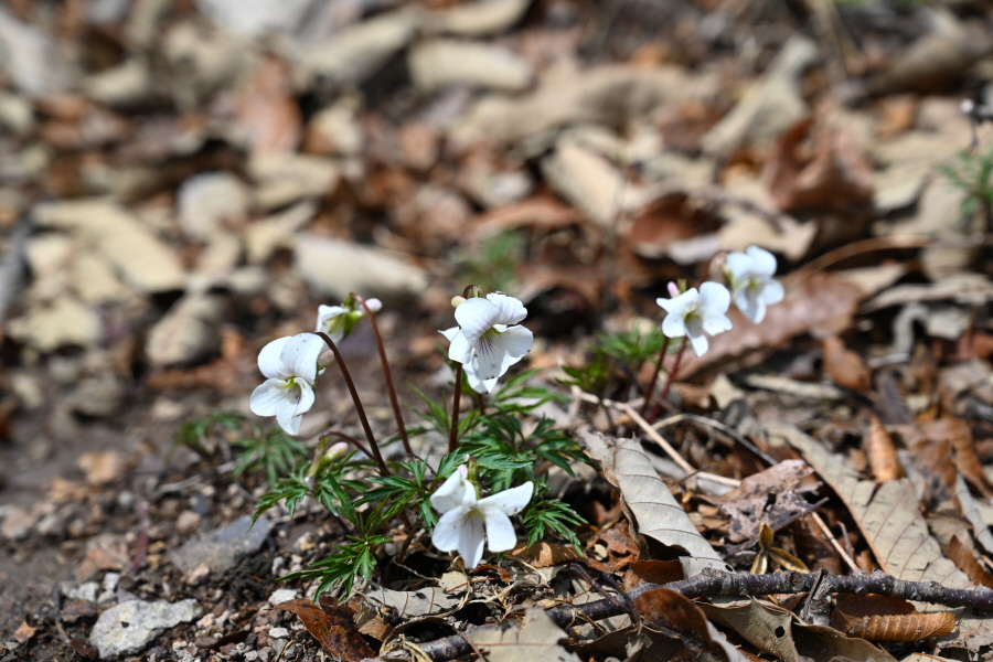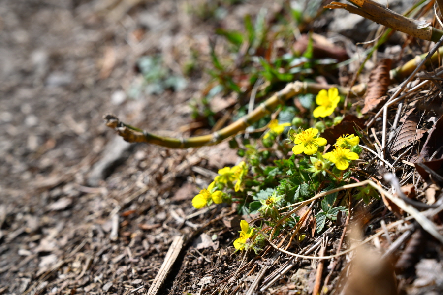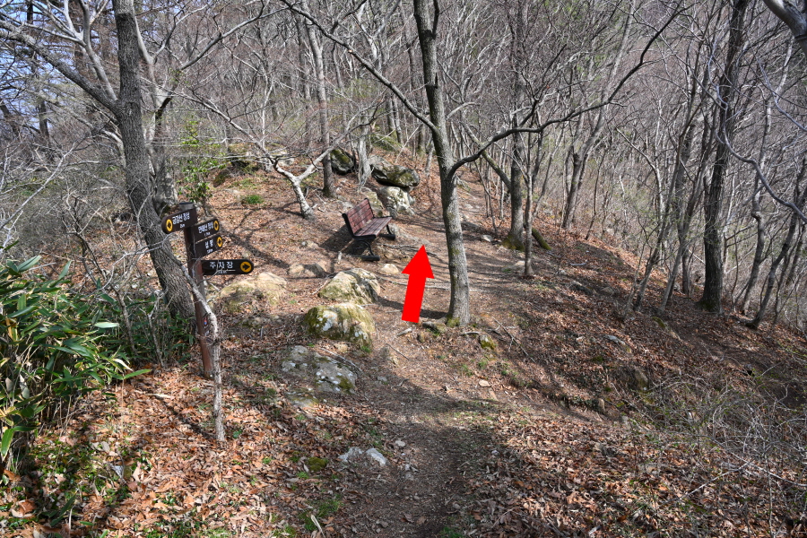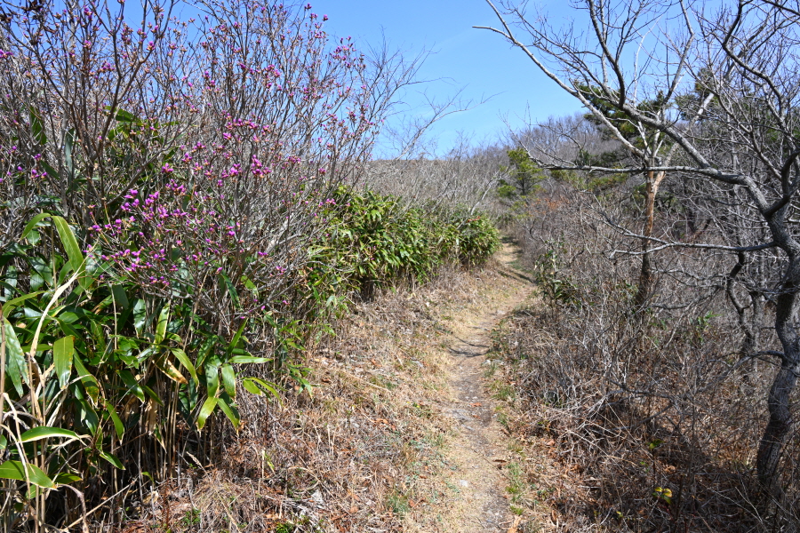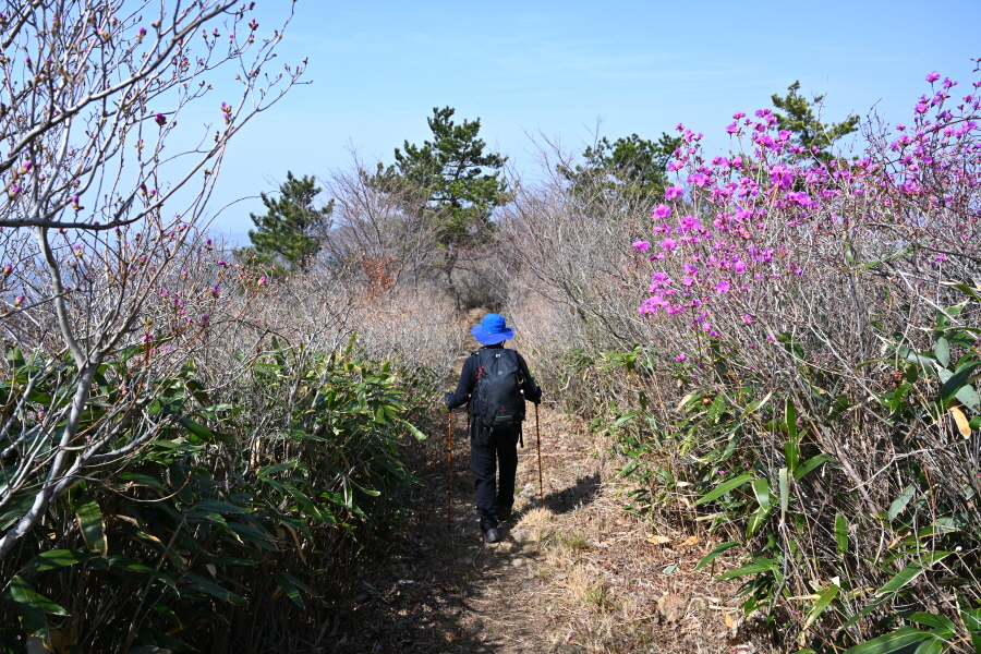 초입부터 경사진 바위 옆에 쇠파이프에 로프가 걸린 오르막길을 갑니다. 꽃망울을 터트린 진달래가 배시시 눈인사를 합니다. 산길에는 보춘화와 금강제비꽃 노루귀 양지꽃 솜나물도 꽃잎을 펼쳤습니다.