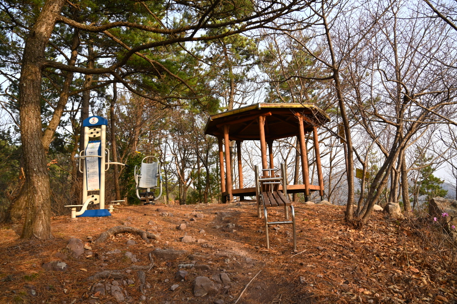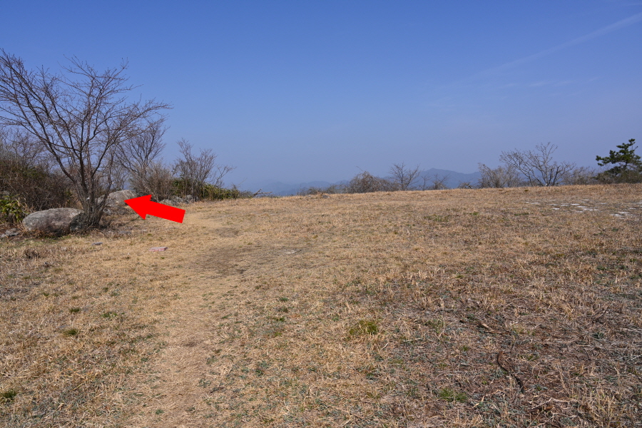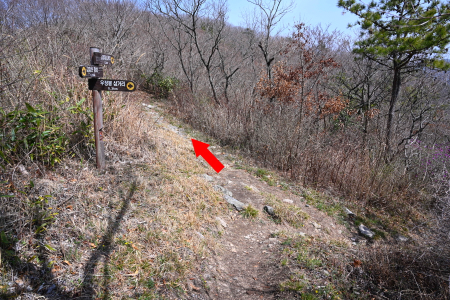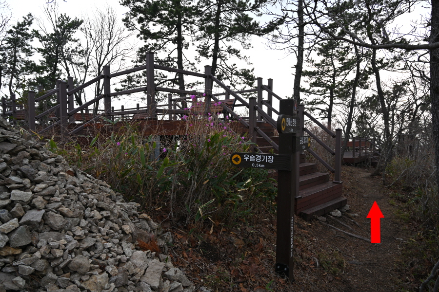 우정봉 삼거리 방향 갈림길에서 직진해 헬기장에 올라섭니다.
