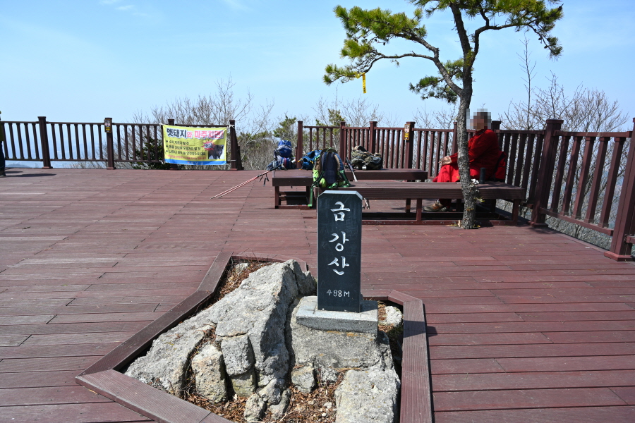 손바닥만 한 정상석이 놓였습니다. 조망이 없어 금강저수지(2.7㎞)로 직진합니다.