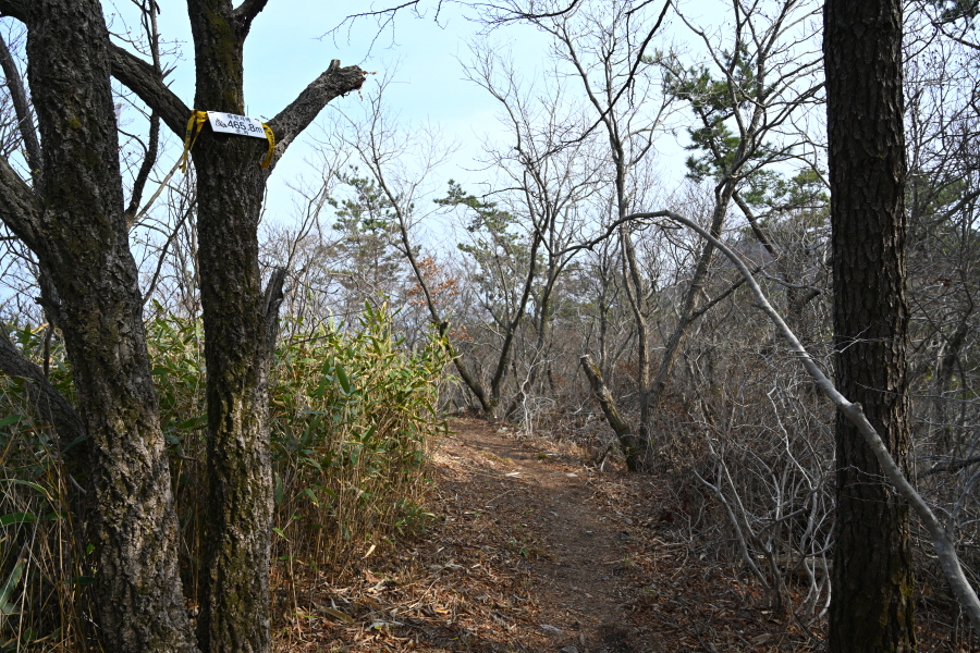 왼쪽 금강재 삼거리로 내려가면 쉼터 갈림길 한 곳을 더 지나 419m봉에 올라갑니다.