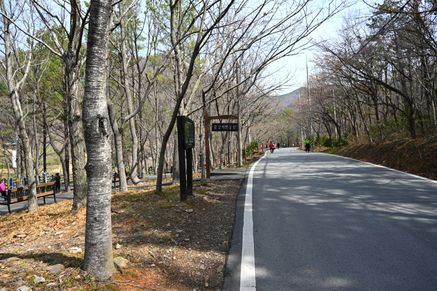 벚나무가 금방이라도 팝콘을 터트릴 듯 꽃망울이 맺힌 덱 길을 갑니다. 15분이면 해촌서원과 금강체련공원을 지나 공중화장실 갈림길에 도착합니다.