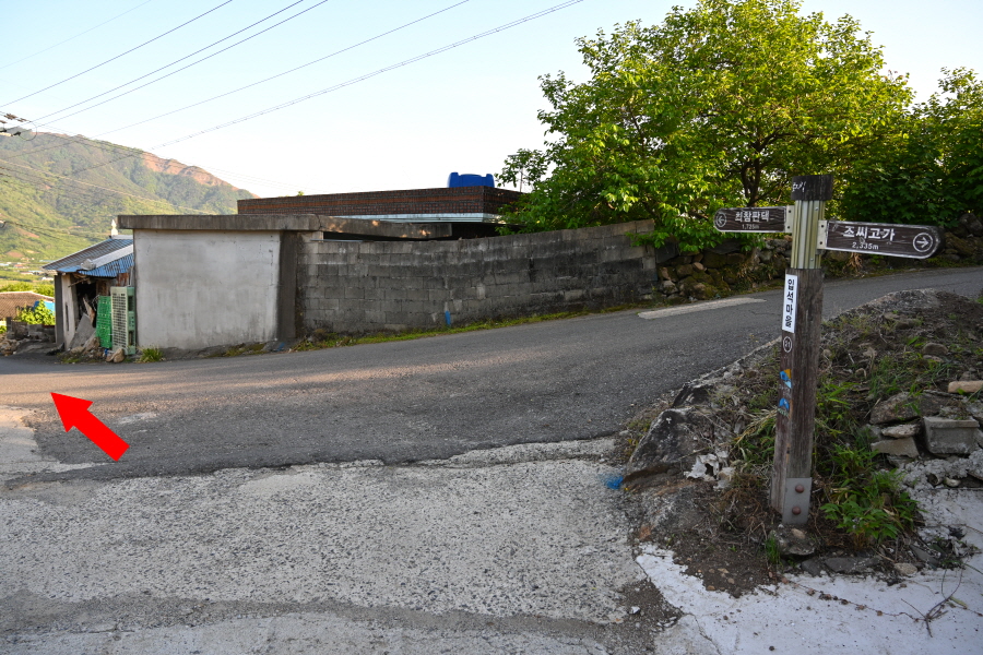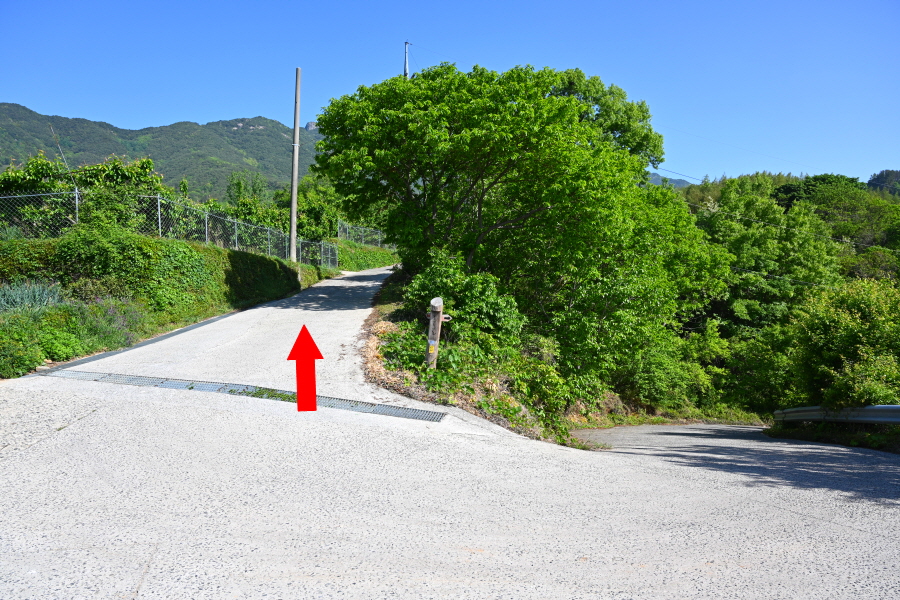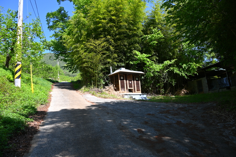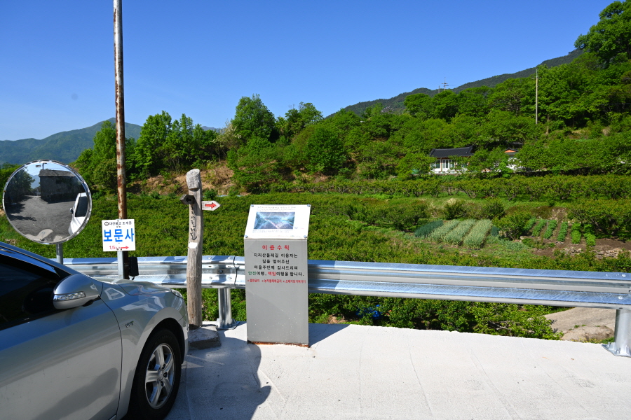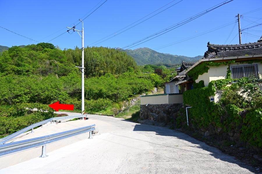 입석 다목적 모임터 옆 갈림길에서 왼쪽으로 갑니다. 오른쪽은 최참판댁 이야기길 토지길 1코스로 취재팀의 하산길입니다. 이어져 나오는 갈림길에서 보문사 방향 오른쪽으로 갑니다. 개울에 놓인 작은 콘크리트 다리를 지나 언덕배기 위 갈림길에서 오른쪽으로 꺾습니다.