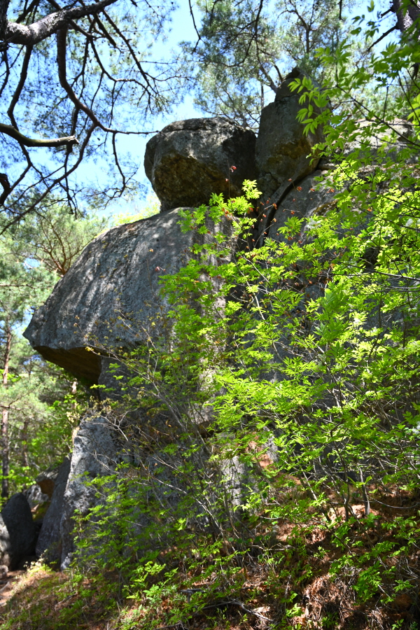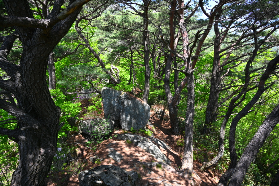 집채만 한 바위와 3층으로 포개진 바위 꼭대기에 뿌리를 내린 ‘천년송’ 아래를 돌아갑니다.