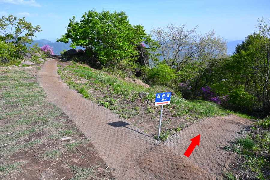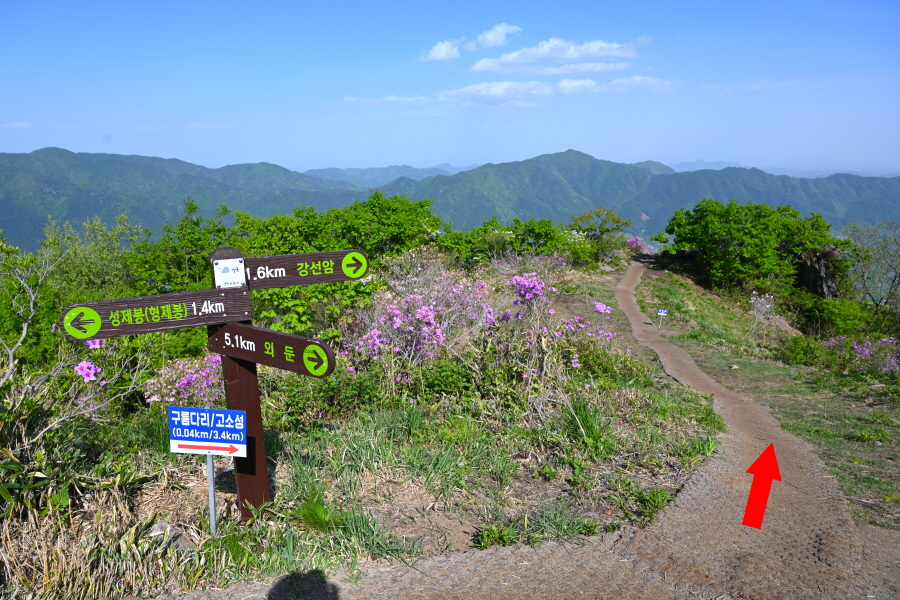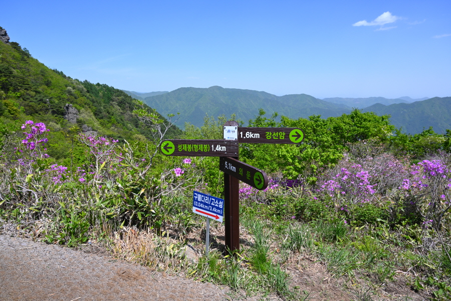구름다리를 건너 강선암 갈림길에서 철쭉 군락이 펼쳐지는 왼쪽 성제봉(1.4㎞)으로 갑니다.