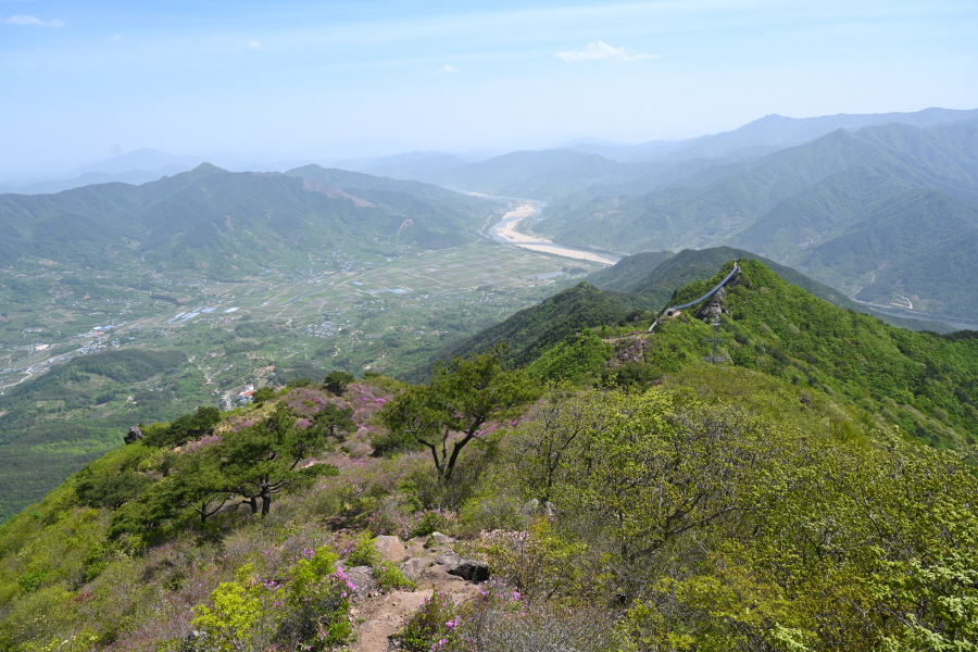 필자는 연둣빛 숲길로 이맘때 가장 걷기 좋은 지리산 둘레길로 해서 바윗길과 노송 숲을 뚫고 만나는 신선대와 137m 길이의 구름다리, 붉은 철쭉군락을 배경으로 하는 S자로 굽어 도는 섬진강은 선계라 할 만큼 아름다웠습니다. 하동 악양의 경치가 중국 악양에 버금간다고 합니다.