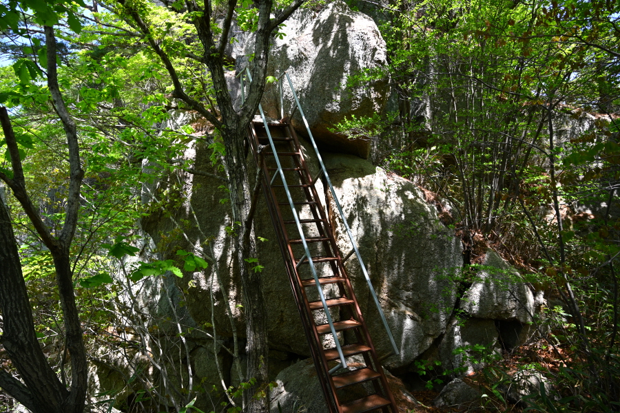 직벽에 걸린 철계단 한 곳을 더 올라 바위를 넘어갑니다.