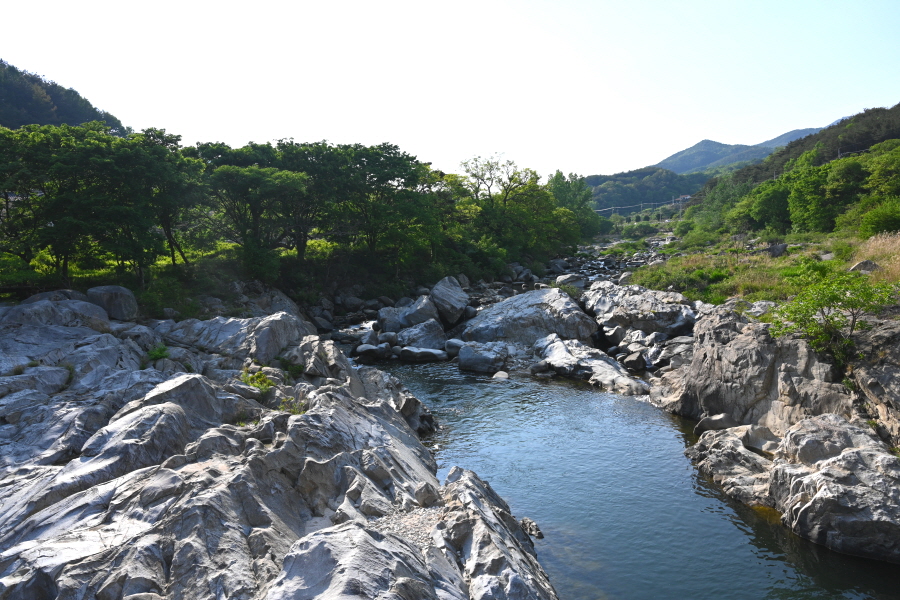 계곡 가운데 하얀 암반에