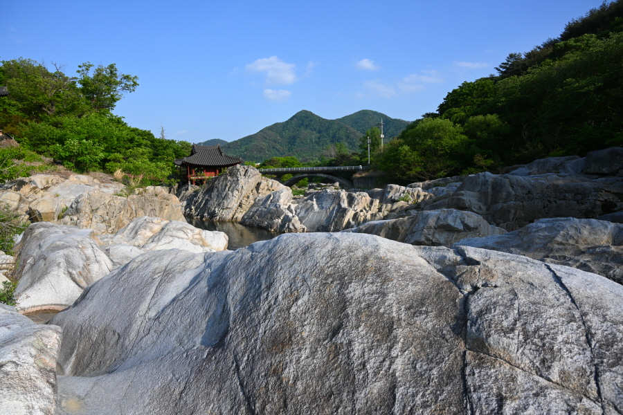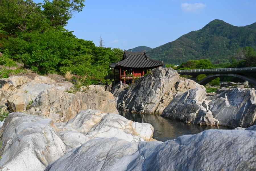 하얀 암반에 화림동 계곡을 끼고 앉은 거연정은