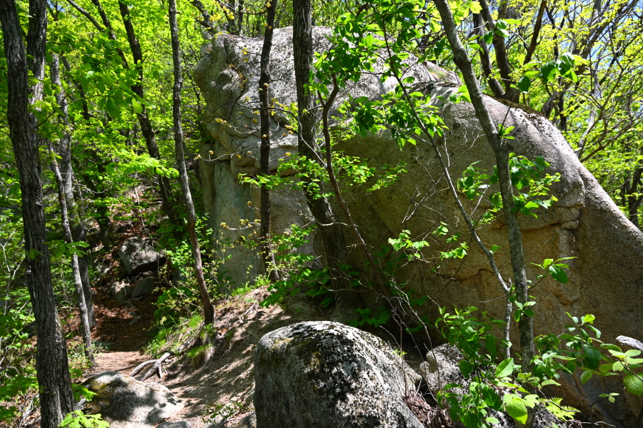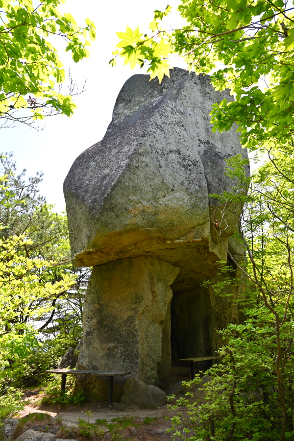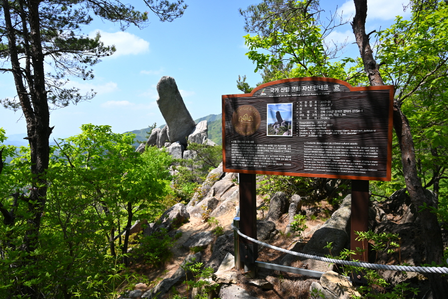 여기서 5분이면 2017년 1월에 국가 산림 문화 유산으로 지정된 길이 2.5m 직경 1.3m 크기의 대포바위가 나옵니다.