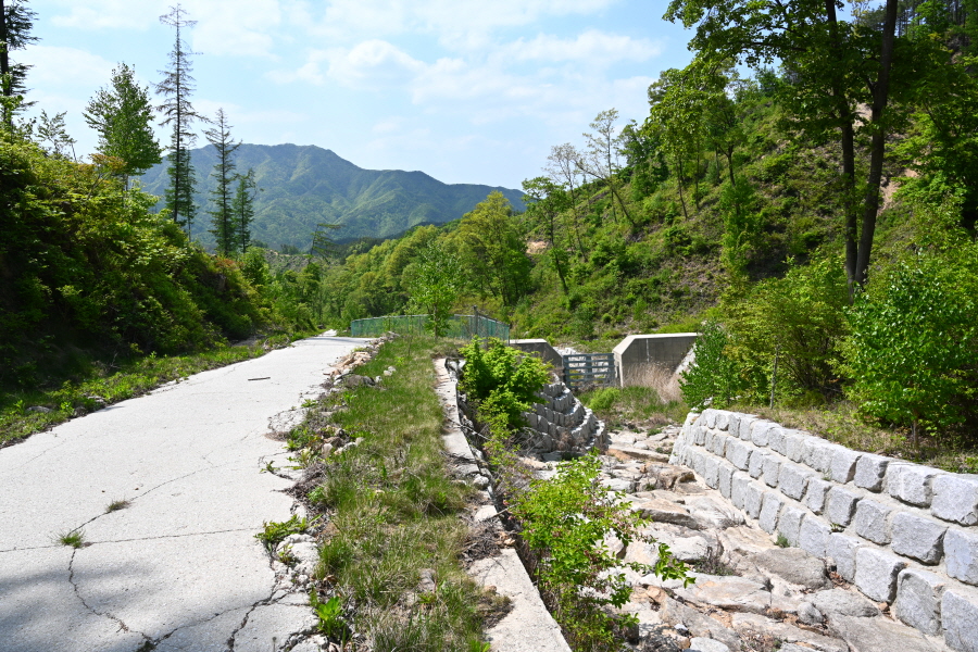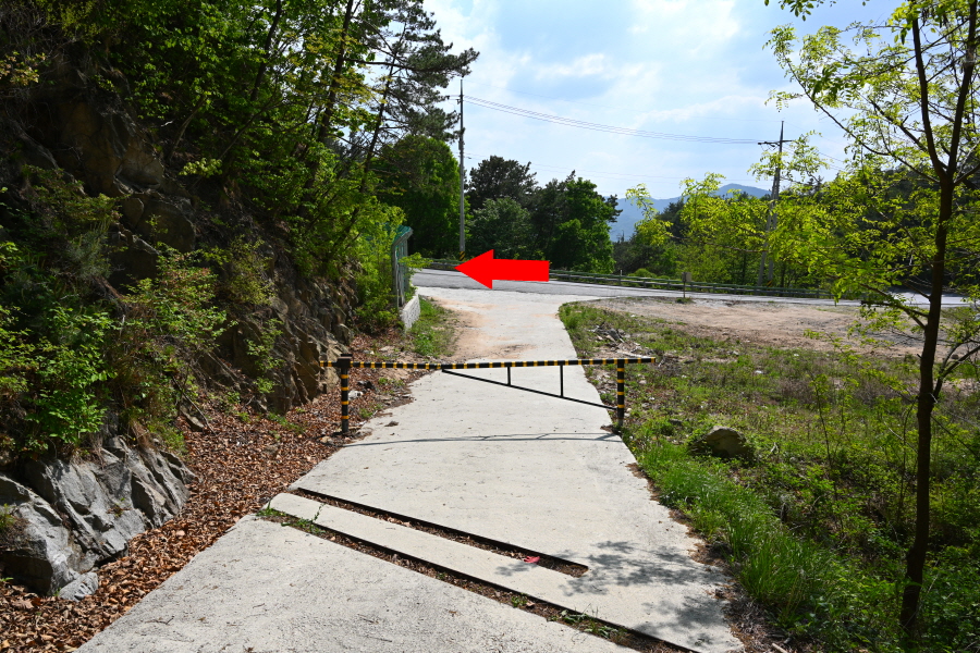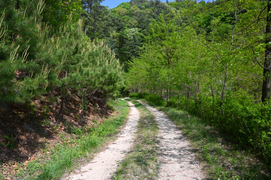 차단기를 지나면 산비탈을 들고 나는 완만한 임도가 이어집니다.