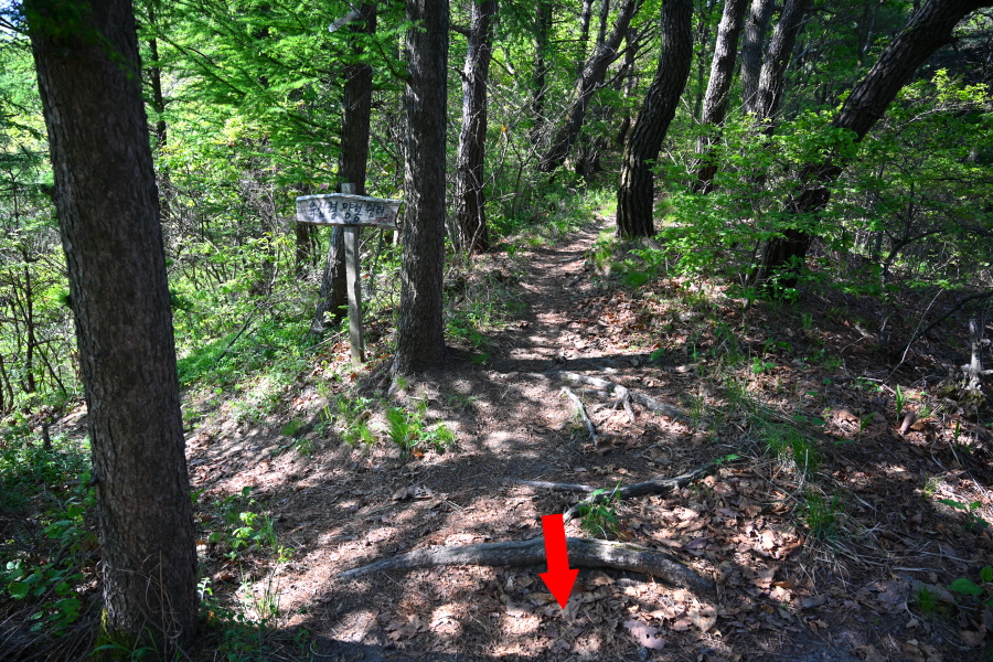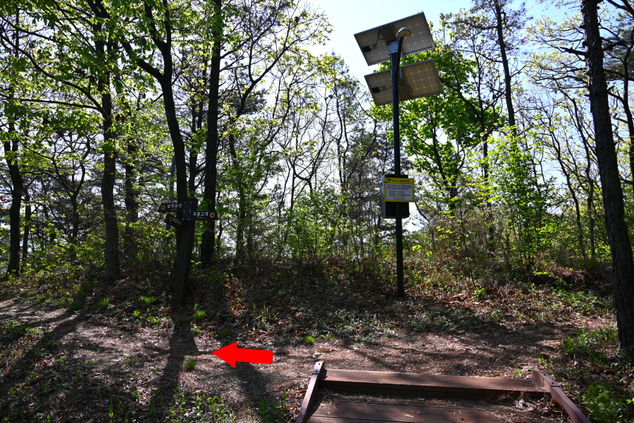 남쪽으로 조망이 열리는 전망대에서 약 8분이면 오른쪽에 희미한 삼형제바위 갈림길이 나옵니다. 삼형제바위를 갔다 옵니다.