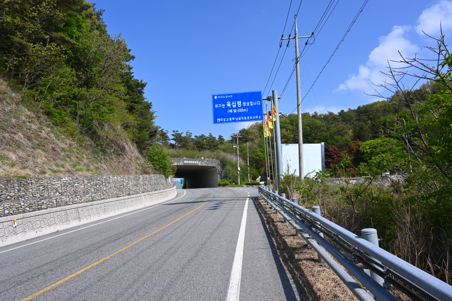 왼쪽으로 도로를 따라 망덕정 바위와 생태터널을 지나 약 22분이면 육십령휴게소에 도착합니다.