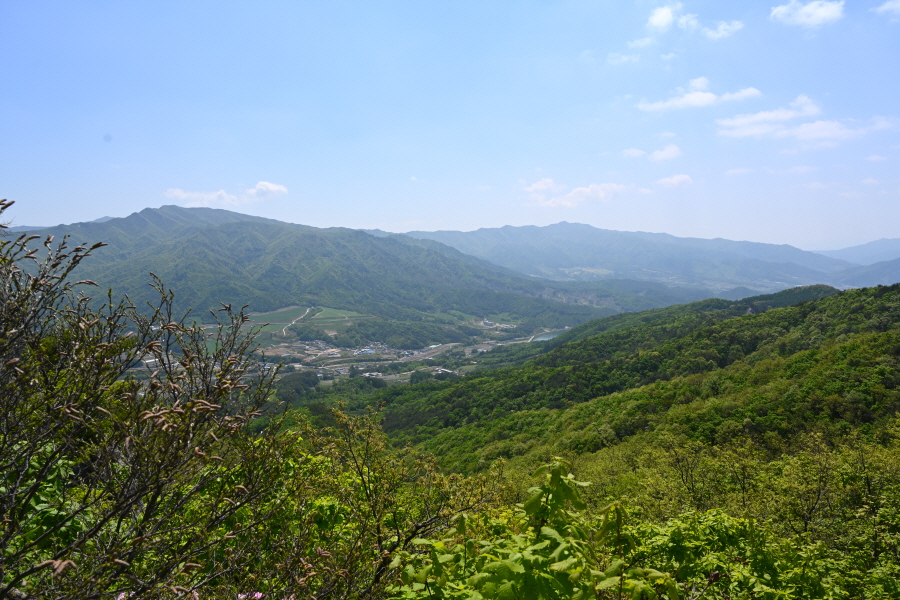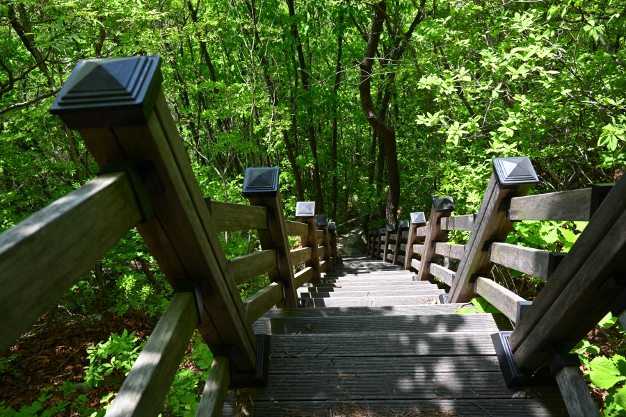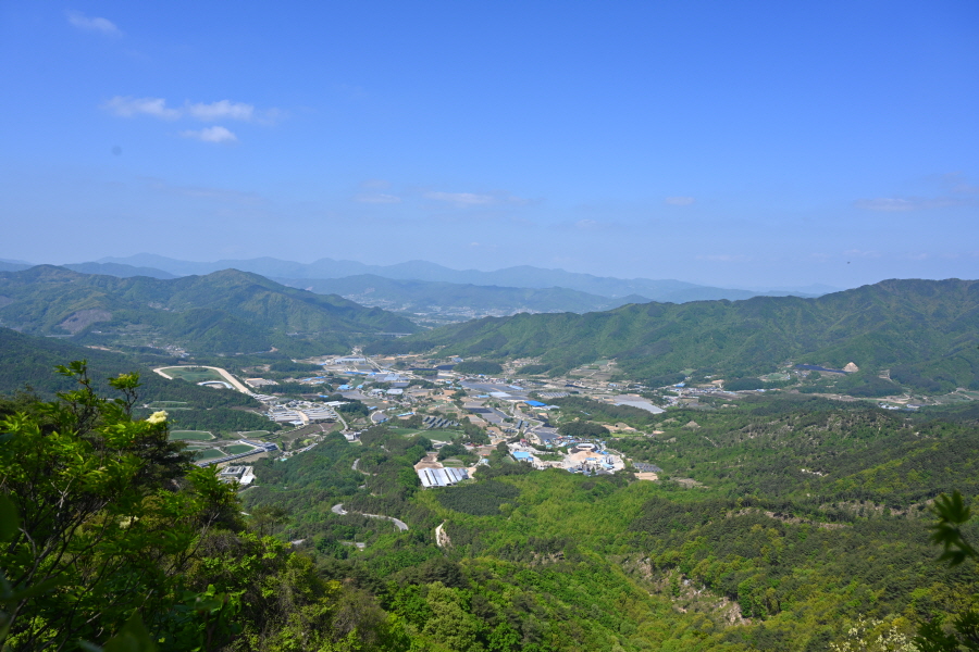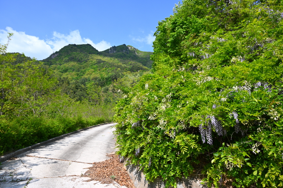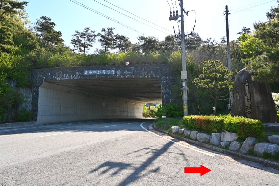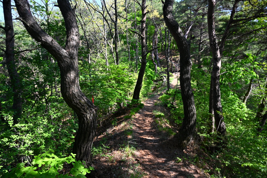 마을 뒤 골짜기 안의 군장동에 들어선 비닐하우스는 화훼농사를 짓습니다. 부산 도심의 한낮은 6월인데도 초여름 날씨를 보여 후덥지근한데, 백두대간 길은 지대가 높고 늘어선 소나무 숲으로 선선하며, 기분이 상쾌합니다. 평탄한 능선은 오씨묘를 지나면서 완만하게 올라갑니다.