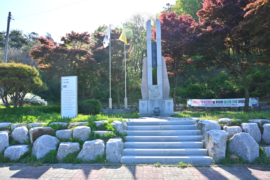 6.25전쟁 직후 덕유산 공비 토벌에 산화한 국군 55명을 기리는 충영탑 오른쪽 음수대에서 나무 계단을 올라가면 백두대간 능선입니다. 왼쪽 남덕유산(8.0㎞)으로 꺾습니다. 오른쪽은 무룡고개 방향.