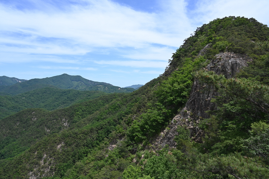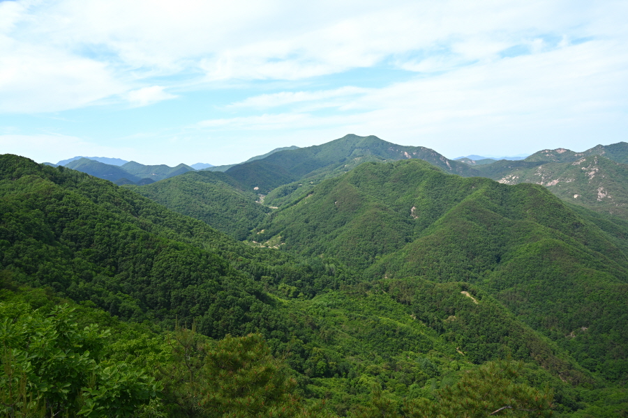 활엽수 숲 그늘이 좋은 고만고만한 봉우리가 이어집니다.