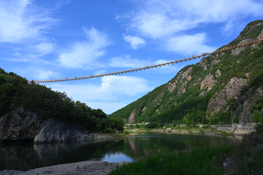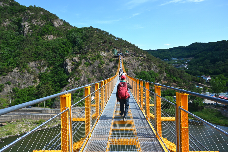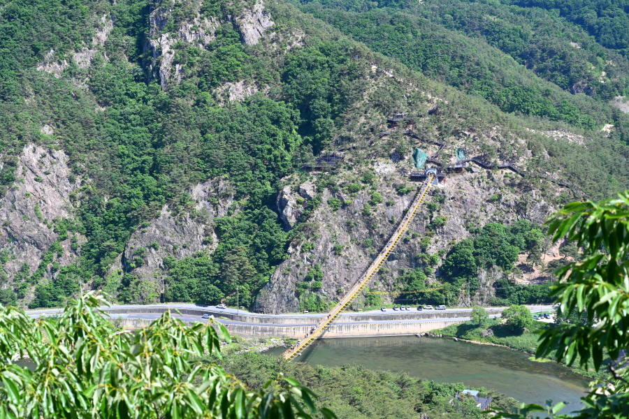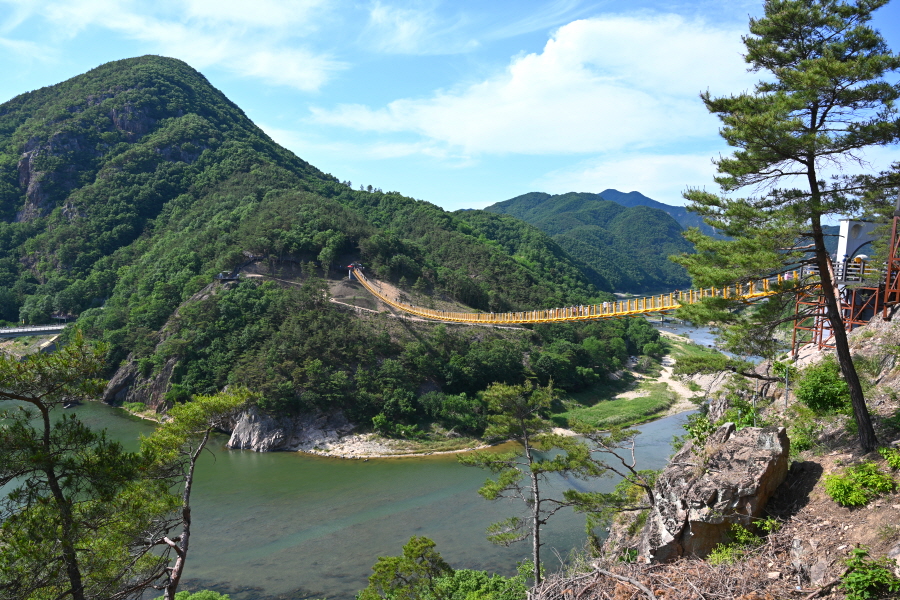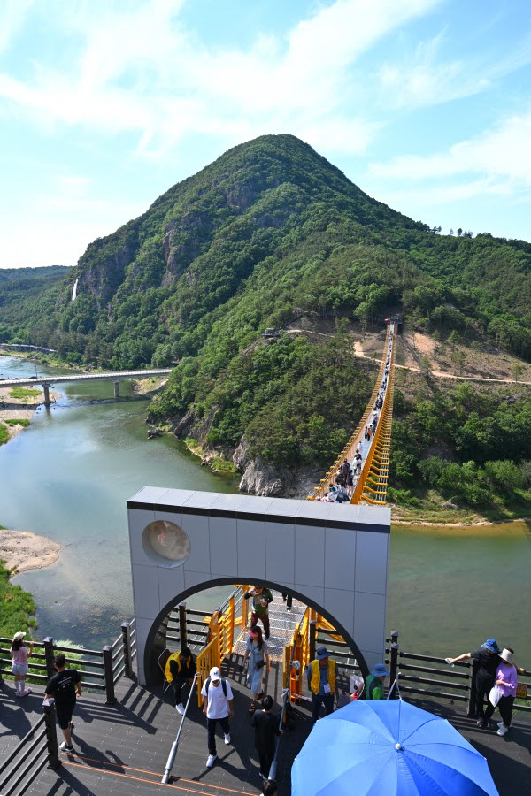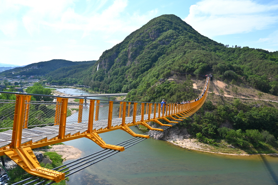 충남 금산군 제원면 천내리에 금강을 가로 질러 부엉산(429m)과 월영산(528.6m) 산허리를 연결 하는 월영산 출렁다리가 지난 4월에 완공됐습니다. 맑은 물과 수려한 경치로 알려진 금강 상류 깎아지른 암벽에 설치한 출렁다리는 빼어난 조망과 금강의 절경을 한눈에 보는 다리로 알려지면서 출렁다리만을 오르려는 관광객도 많이 찾습니다.