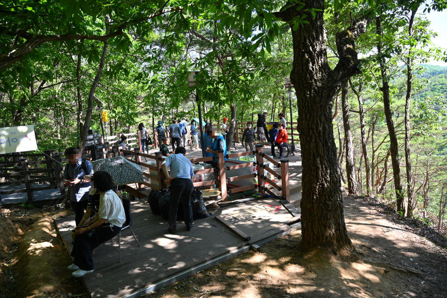 장선길 갈림길에서 오른쪽 전망대로 내려가면 쉼터 광장이 나옵니다.