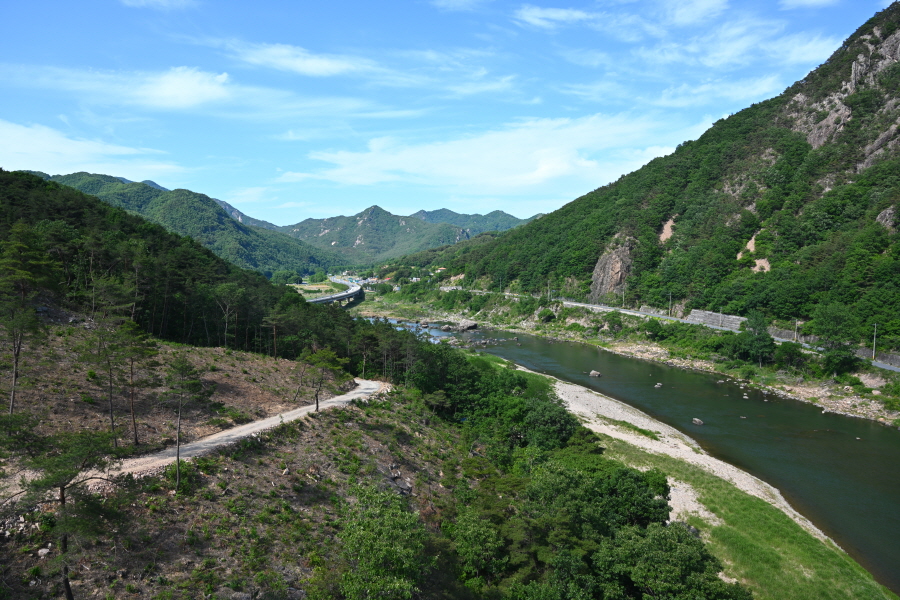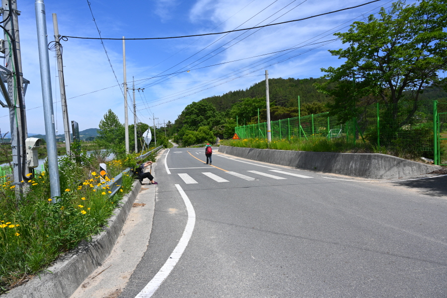 왕복 2차선 도로가 좁아지면서 금강을 따라가는 콘크리트 도로로 바뀝니다.