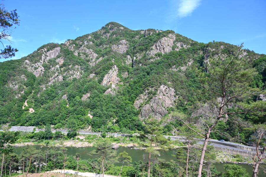 'S자'로 굽어도는 금강과 월영산 바위벼랑이 절경입니다.