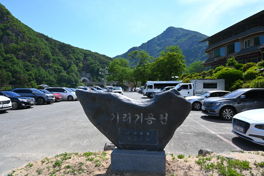 이번 산행은 원골유원지 내 기러기공원 주차장(재 2 주차장)에서 출발합니다. 강 건너 인공폭포가 걸린 절벽은 부엉산이며, 금강을 사이에 두고 오른쪽 깎아 세운 바위 벼랑이 월영산 서봉입니다. 출렁다리는 금강을 가로질러 두 산을 연결한 다리로 산행 끝에 만납니다. 먼저 자지산 산행을 했습니다.