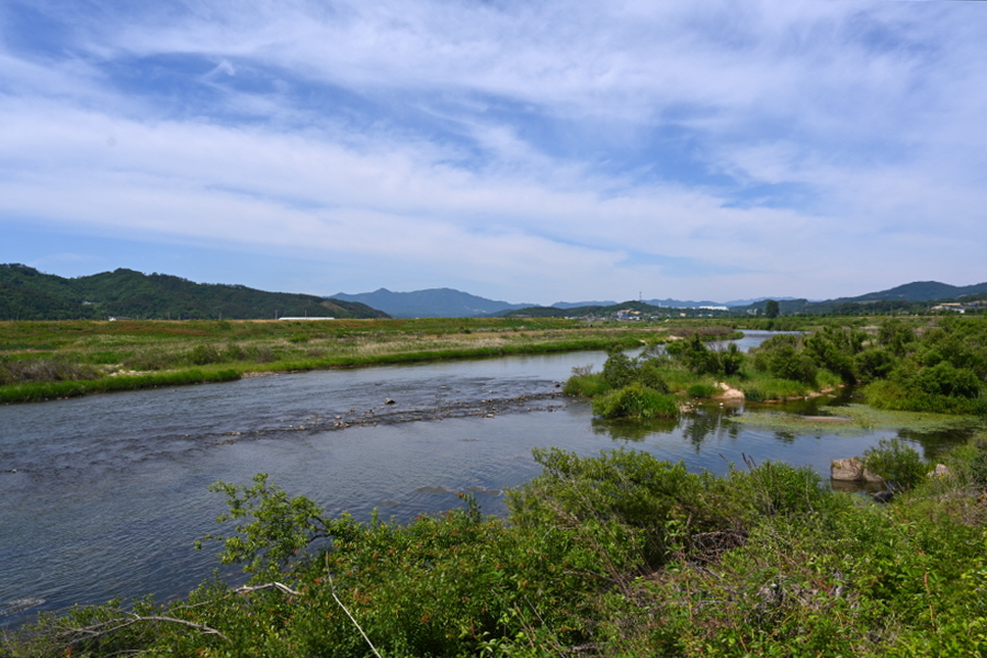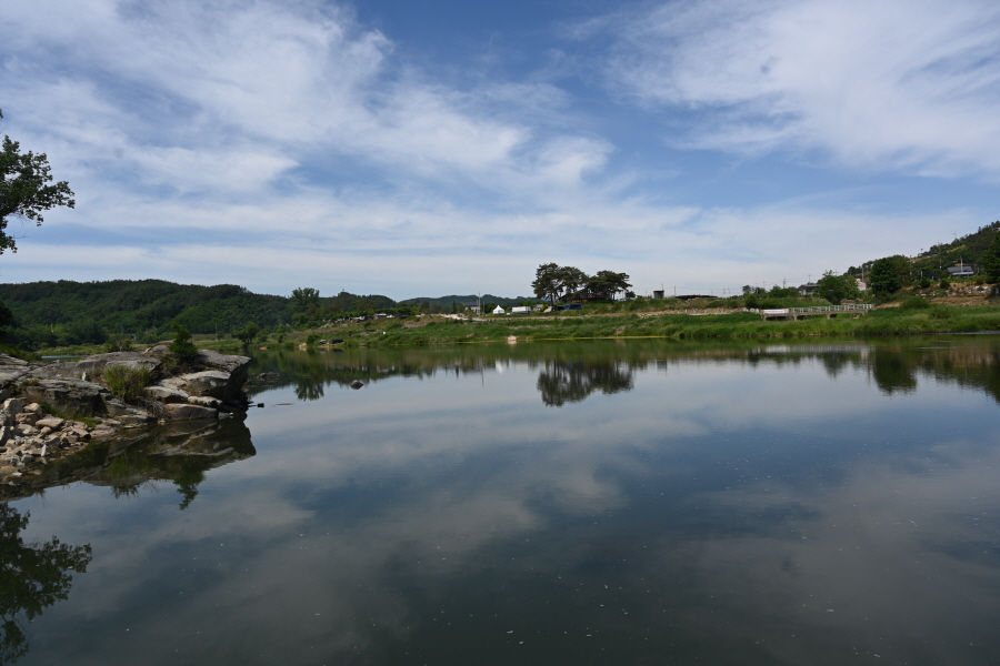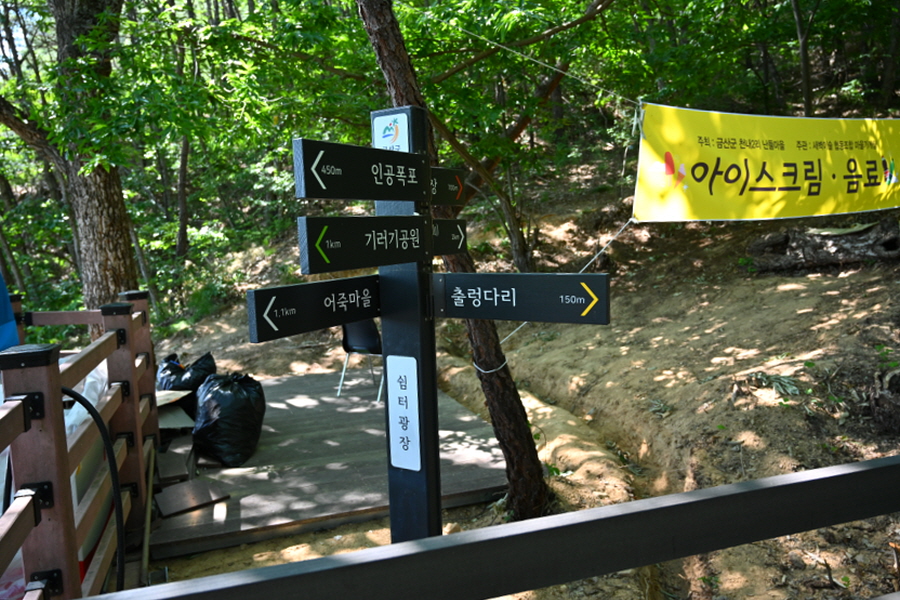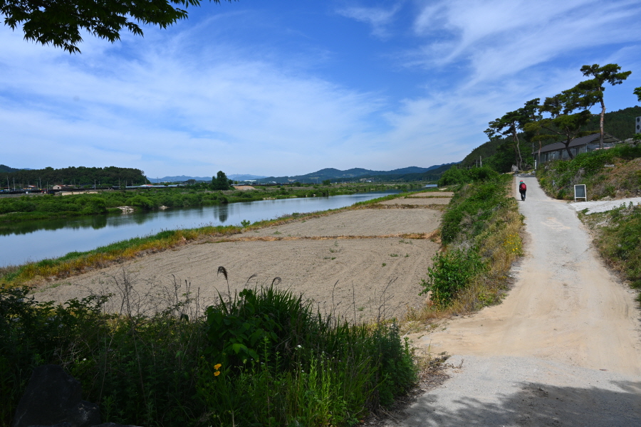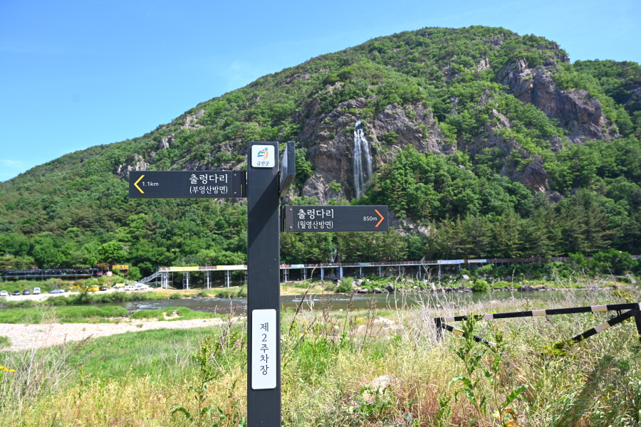 곧 나오는 주차장 안쪽 출렁다리 관리사무소에서 오른쪽으로 내려가면 금강천변에 도착한다.