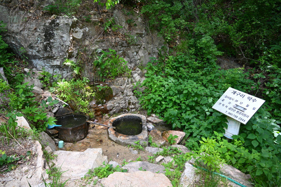 산 이름이 자지산이라 좀 거시기한데 뜻은 다르지만 자지산을 남근에 비유하거나 천태산 쪽에서 자지산을 보면 불끈 솟은 남성의 생식기를 닮았다 합니다. 부엉산 아래 벼랑에 설치된 인공폭포 오른쪽에 위에서 아래로 찢어진 바윗골을 음굴(용굴)이라 해 음양의 조화를 맞췄습니다.