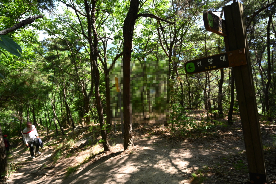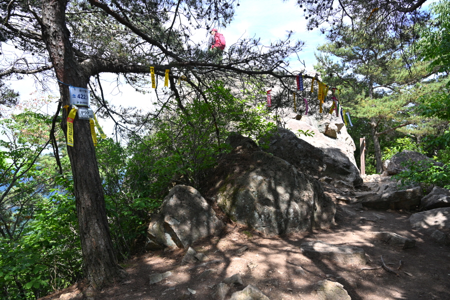 삼각점이 있는 정상은 동봉입니다. 서봉과 150m 즈음 떨어졌는데, 숲이 막아 북쪽과 남쪽으로 조망이 열리는 서봉이 정상 대접을 받습니다.
