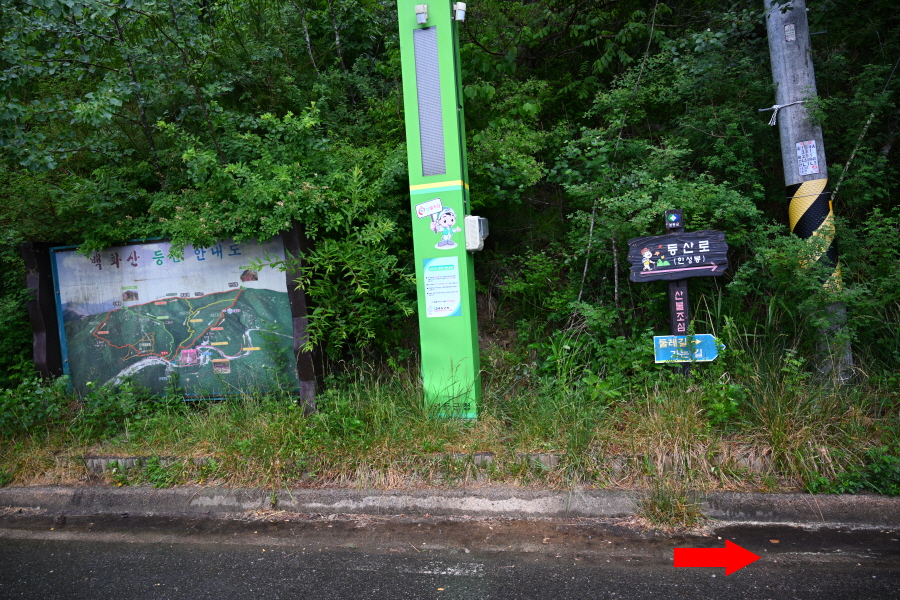 15분이면 다시 둘레길 안내도가 서 있는 도로와 만납니다.