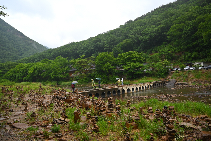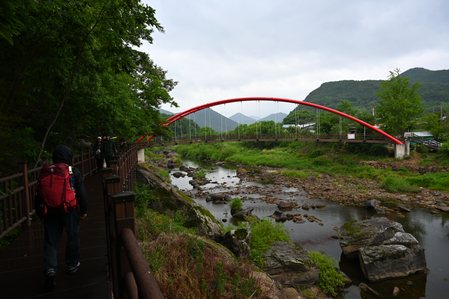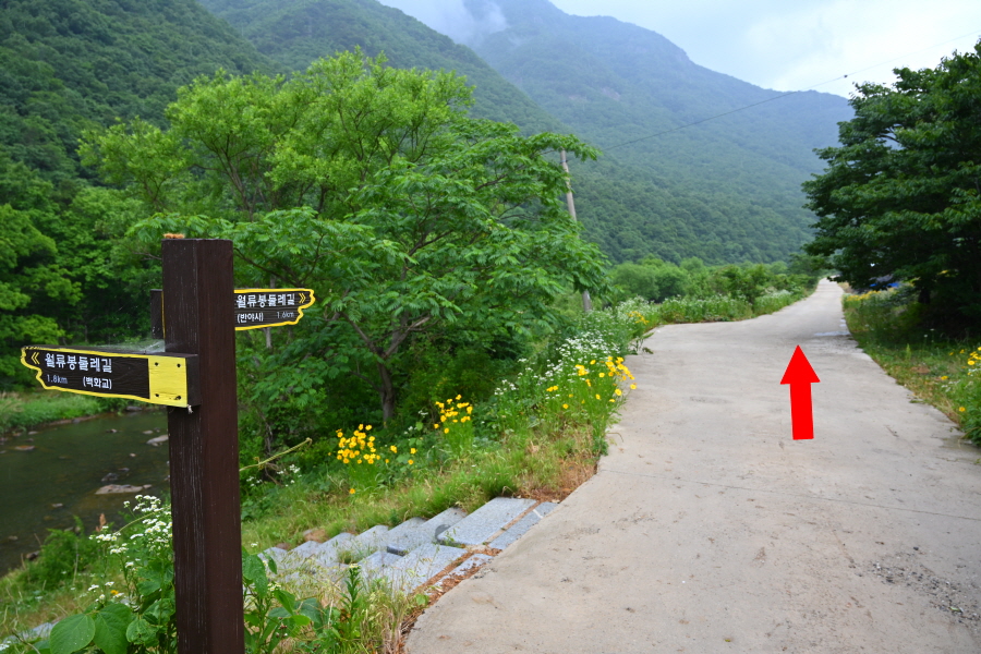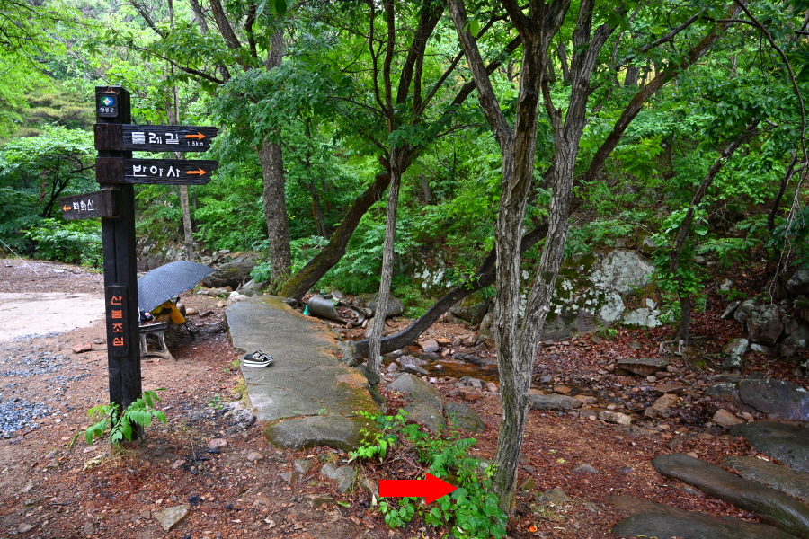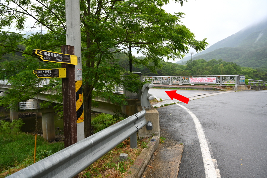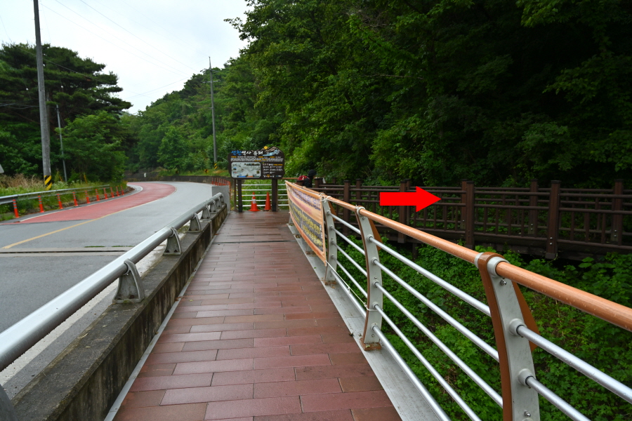 100m 앞에서 왼쪽 반야사(0.9㎞) 방향으로 반야교를 건넌 뒤 오른쪽으로 꺾습니다.