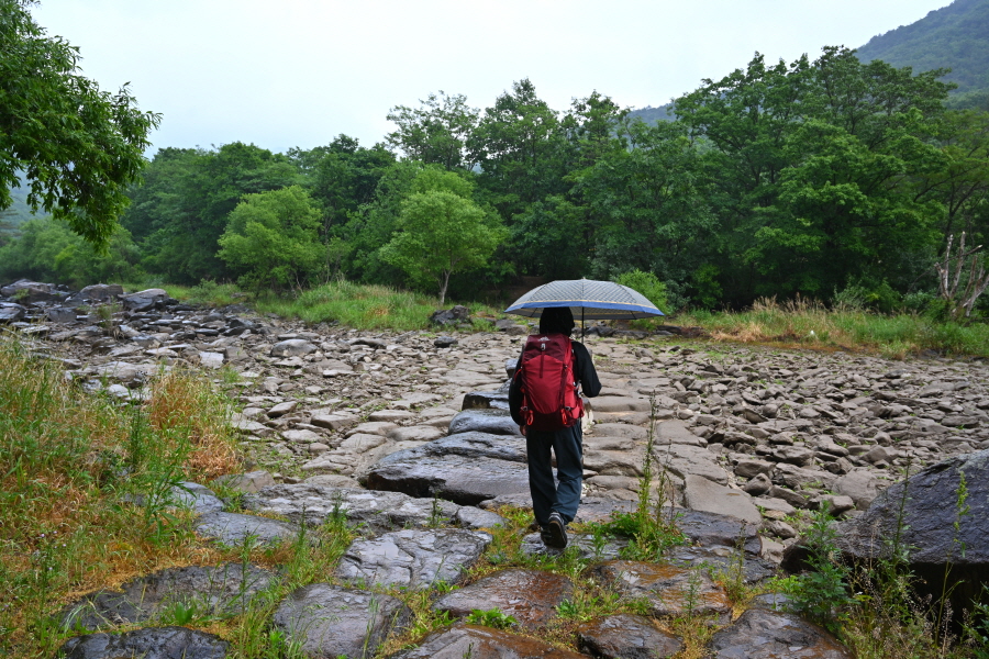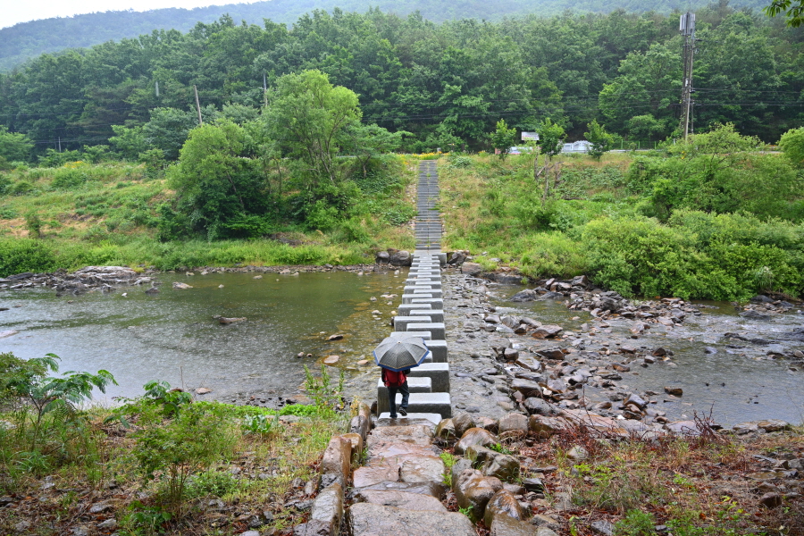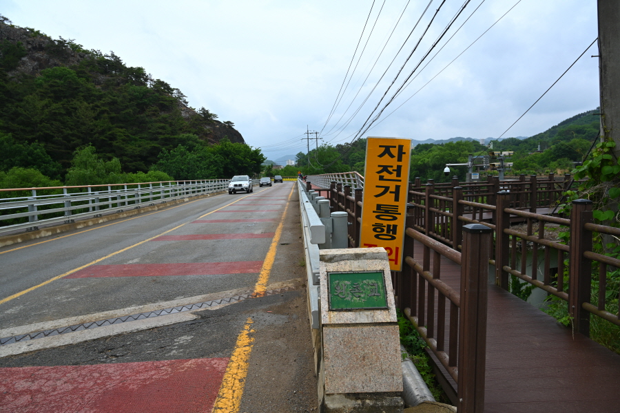 두 곳의 징검다리를 건너 도로에 올라선 뒤 왼쪽으로 꺾어 반야교(1.6㎞) 방향 둑길을 갑니다.