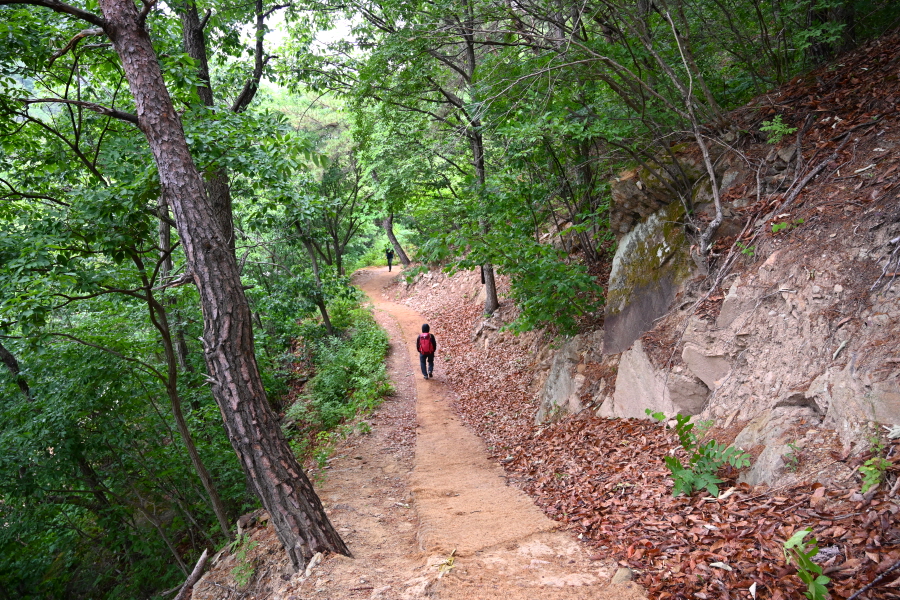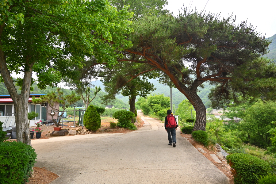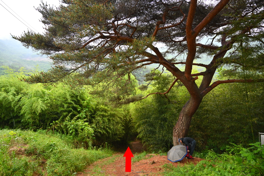 관음상 앞에서 200년 된 소나무 보호수를 지나 댓숲을 빠져 나가 호젓한 숲길을 걷습니다.