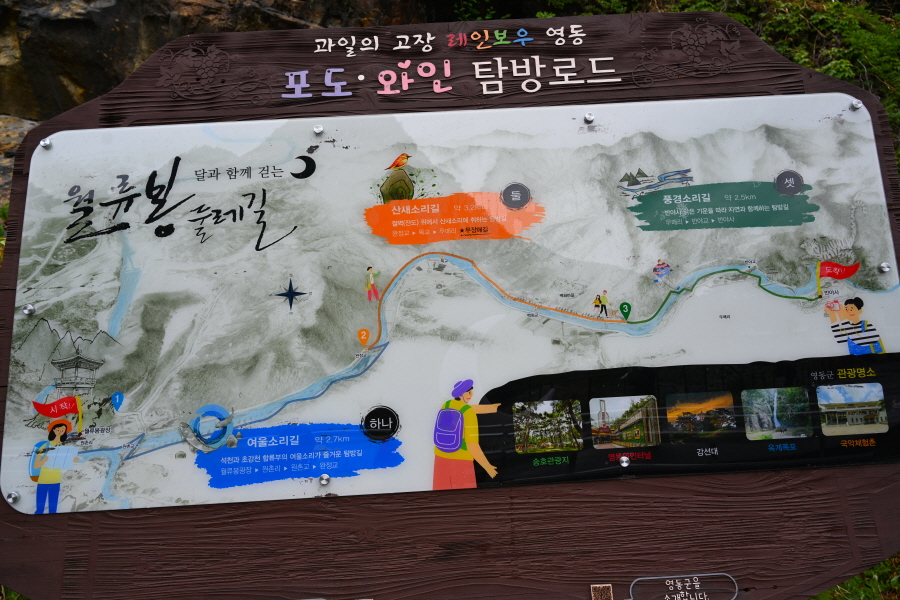 필자는 양산팔경 금강둘레길과 백화산 호국의 길을 2018년에 걸었습니다. 이번에 다시 달도 쉬어간다는 월류봉의 한천팔경과 석천의 비경을 둘러보는 월류봉 둘레길을 찾았습니다.
