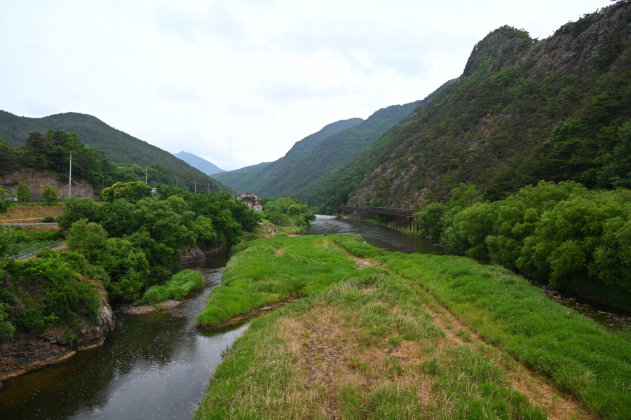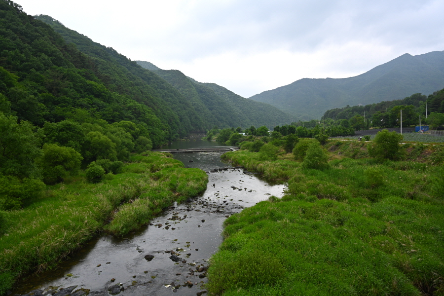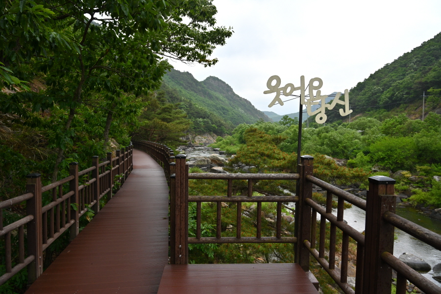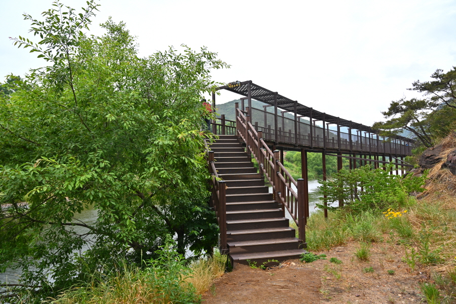 월류봉 광장으로 되돌아간다면 다리를 건넌 뒤 오른쪽 강둑을 따라 원정교에서 왔던 길을 되짚어 가면 됩니다.